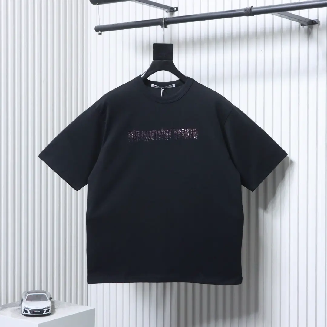 Alexander Wang 26SS Strass-Buchstaben Kurzarm-T-Shirt