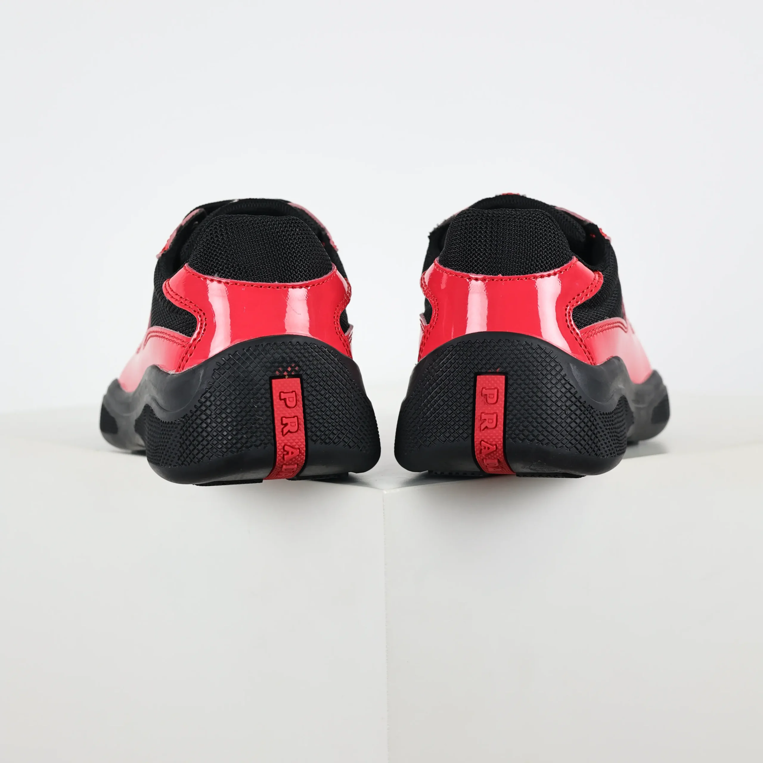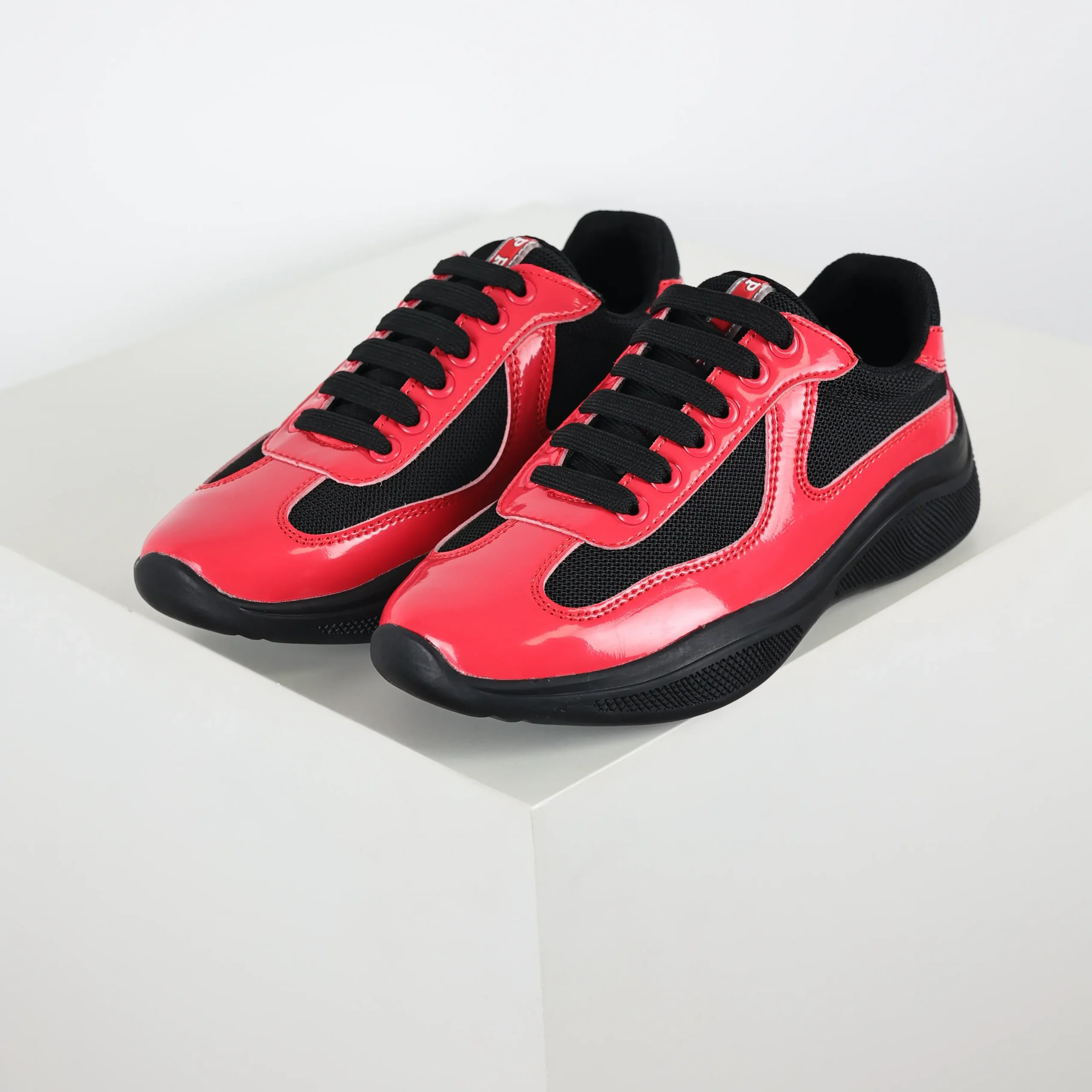 Die Copa América „Red and Black“ Low-Top-Sneaker aus leuchtend rotem Lackleder bieten einen markanten Look – eine kompromisslose Wahl für modebewusste Menschen.