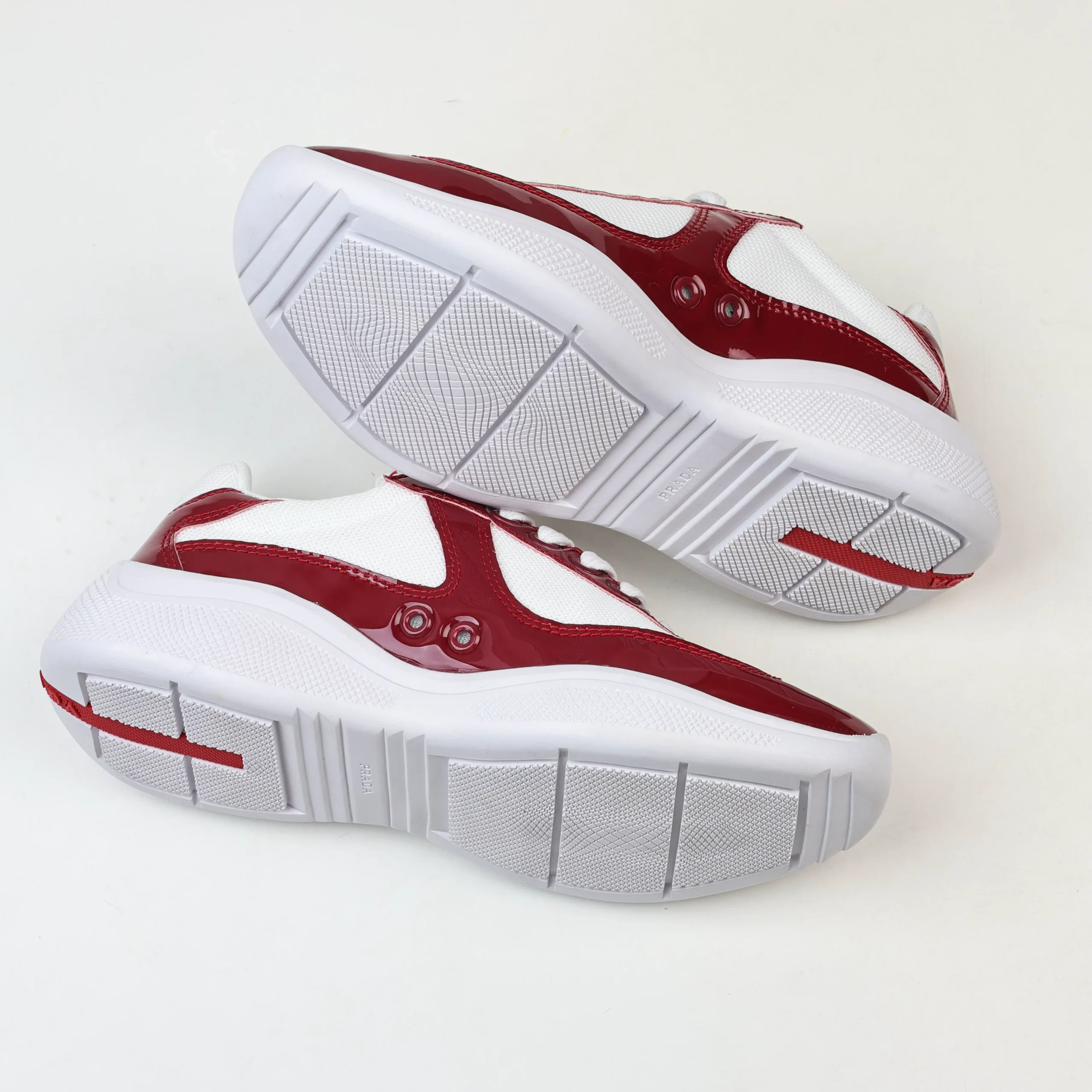 Der America’s Cup „White Ruby Red“ vereint ikonisches Design mit moderner Raffinesse. Das schnittige Profil und die hochwertige Verarbeitung machen ihn zu einem unverkennbaren Statement in der Welt des Luxus-Sneakers.Weißes Leder trifft auf das markante Linea Rossa-Logo in Rubinrot – ein kraftvoller Farbkontrast, der den sportlich-luxuriösen Charakter des Schuhs unterstreicht und sofort ins Auge fällt.