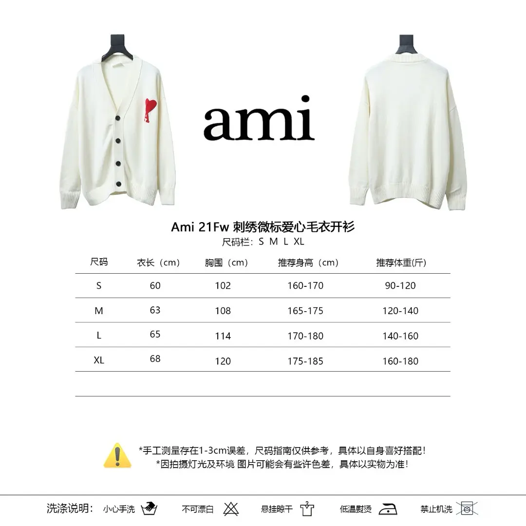 Ami 21Fw Strickjacke mit Herzstickerei und Mikro-Logo