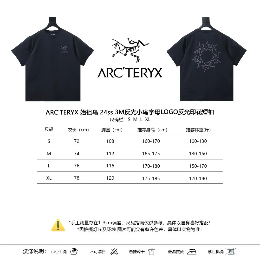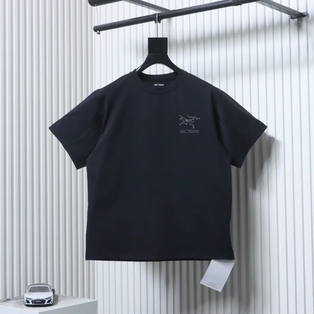 Arc’teryx — Kurzarm-T-Shirt mit reflektierendem „Little Bird“-Logo und Schriftzug