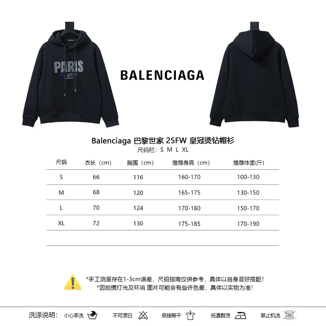 Balenciaga 25FW Crown Rhinestone Hoodie