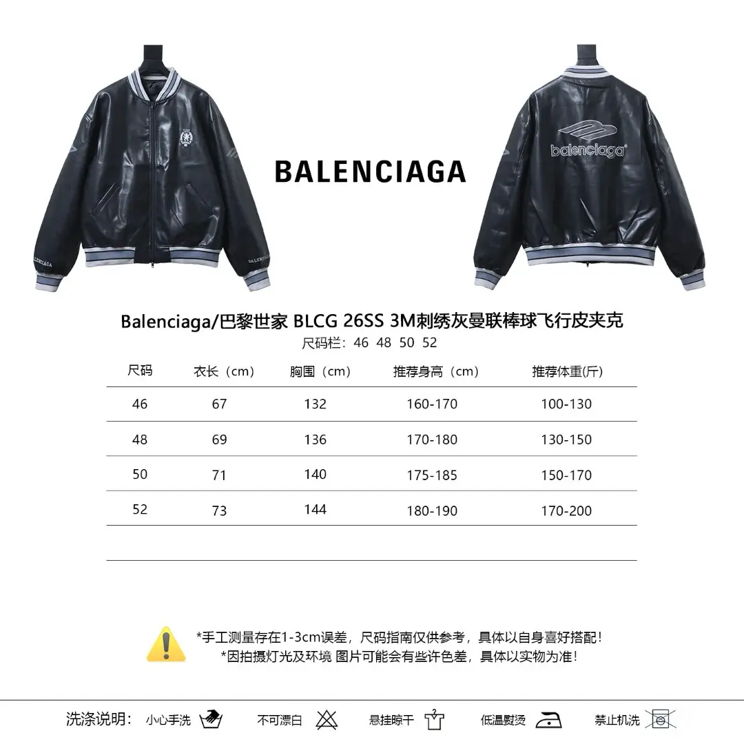 Balenciaga 3M bestickte, graue Leder-Bomberjacke im Baseball-Stil „Man Utd“
