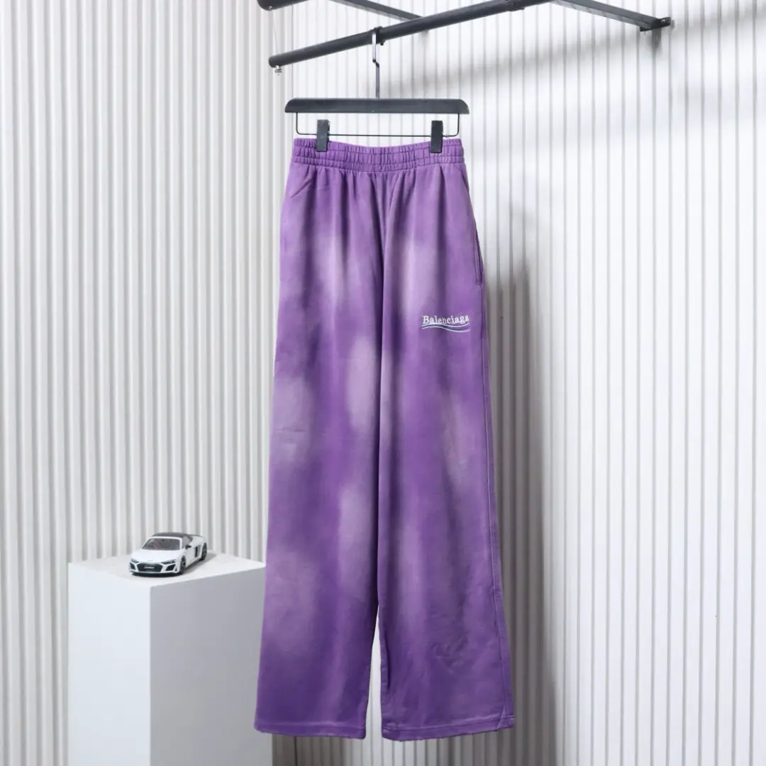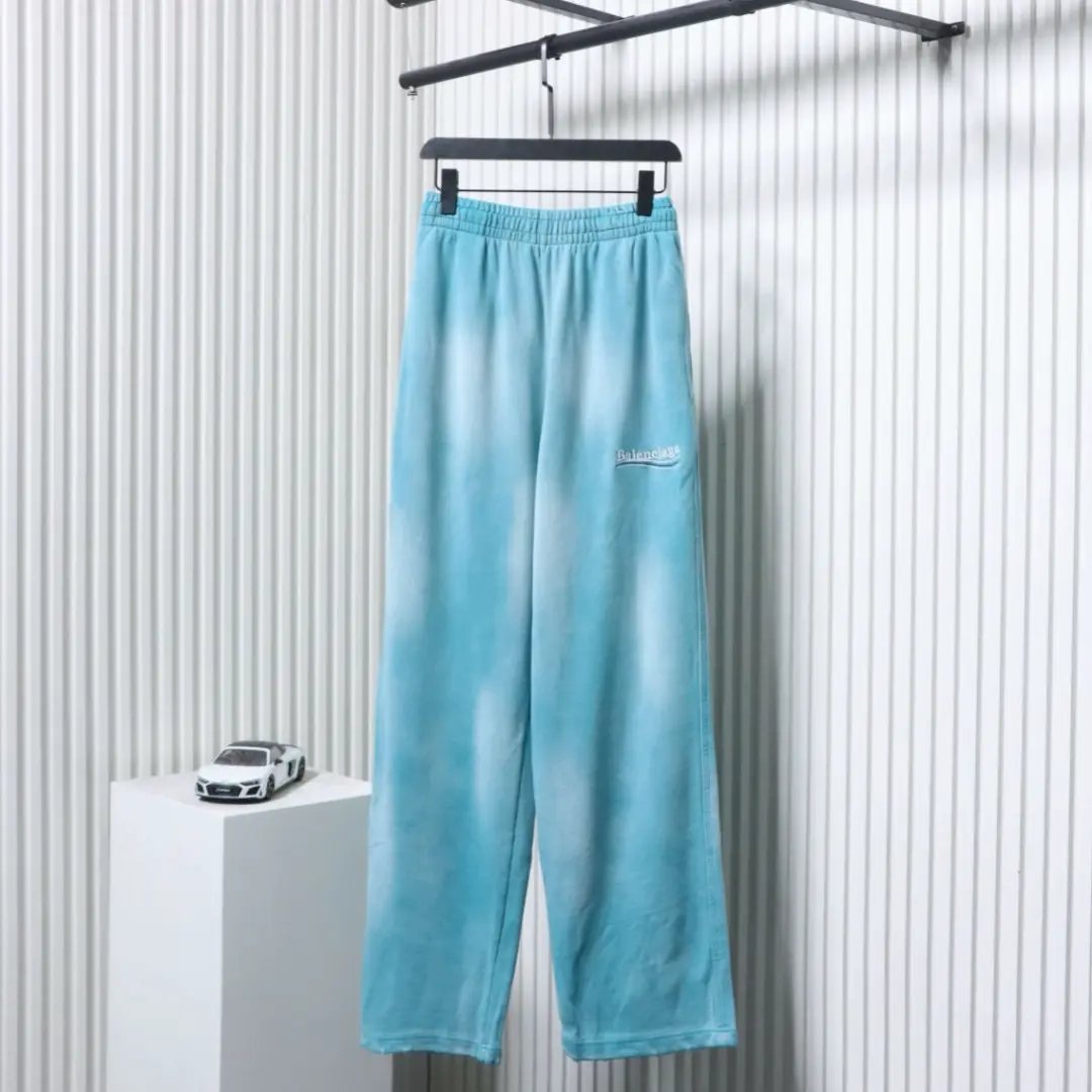 Balenciaga BLCG Hose mit weitem Bein und verwaschenem Batikmuster und aufgestickter Schneeflocken-Cola