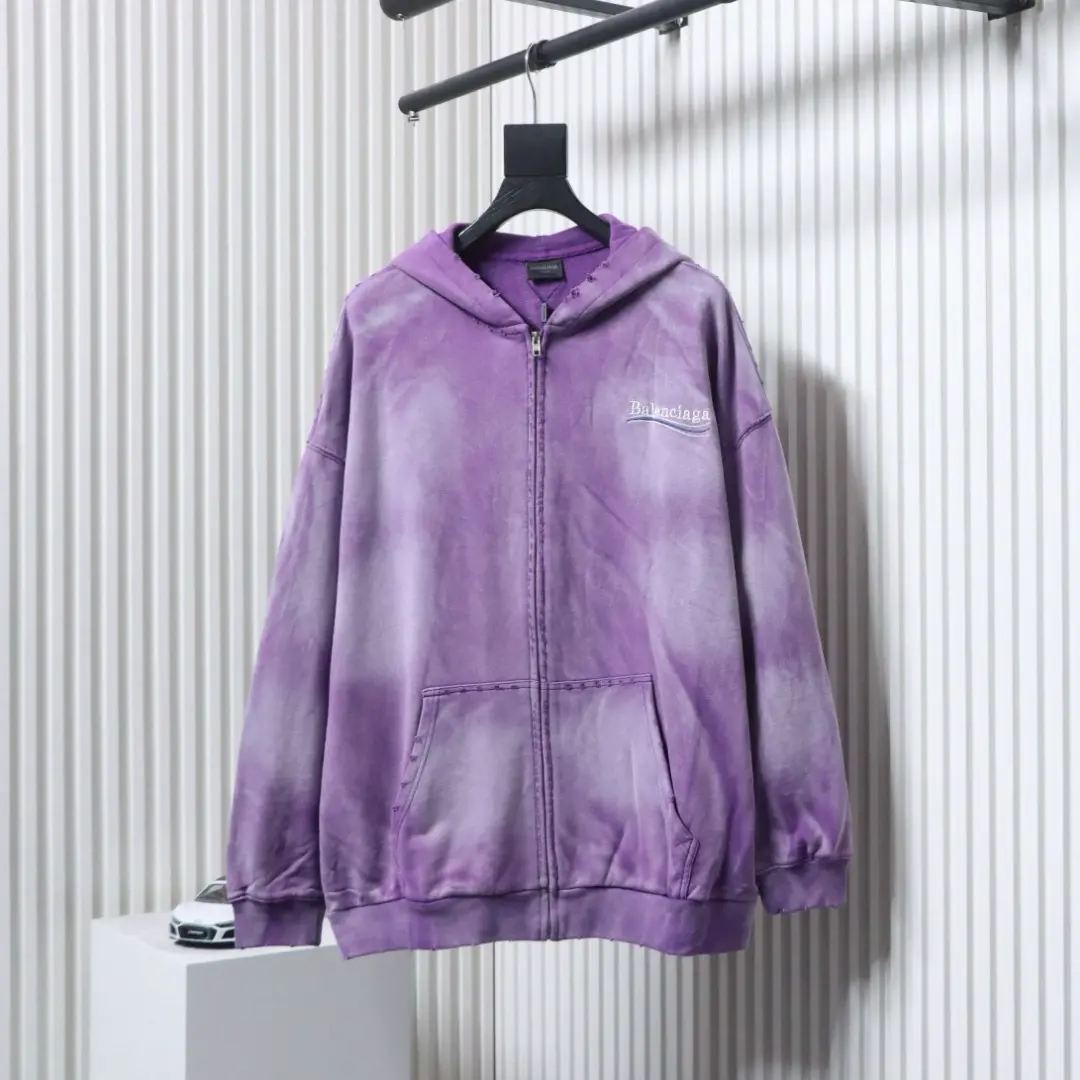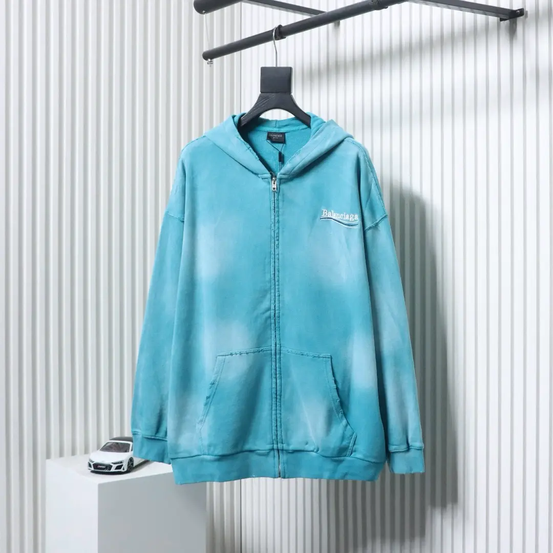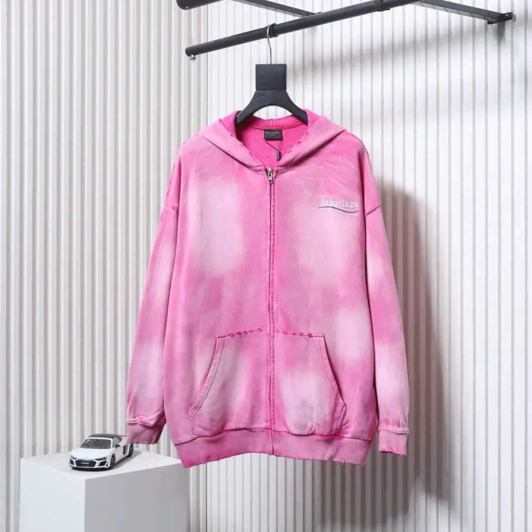 • Balenciagas beliebtes Cardigan-Sweatshirt mit Reißverschluss und aufwendigem Batik-, Wasch- und Rippmuster.