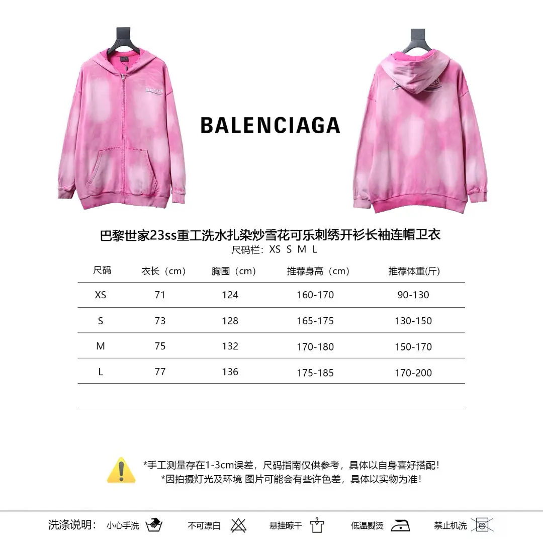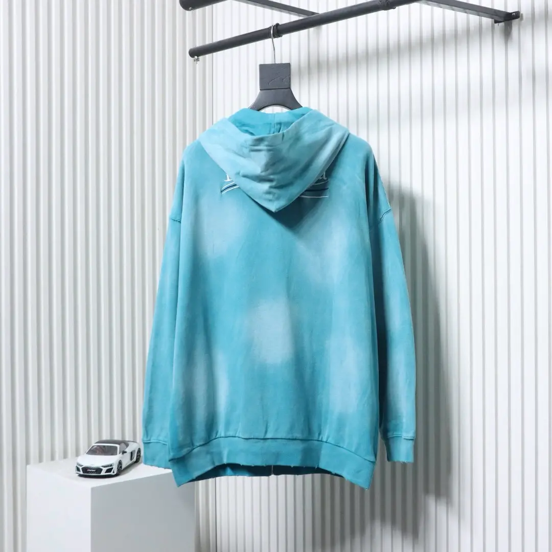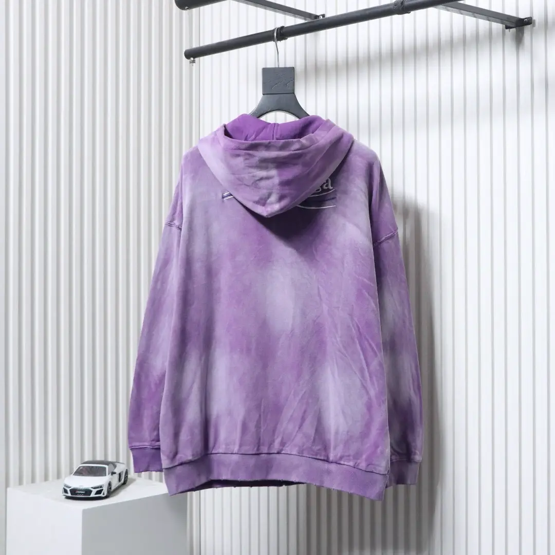 Balenciaga BLCG Strickjacke mit Kapuze und Batikmuster in schwerer Waschung und gebratener Schneeflocke mit Cola-Stickerei, langärmliges Sweatshirt