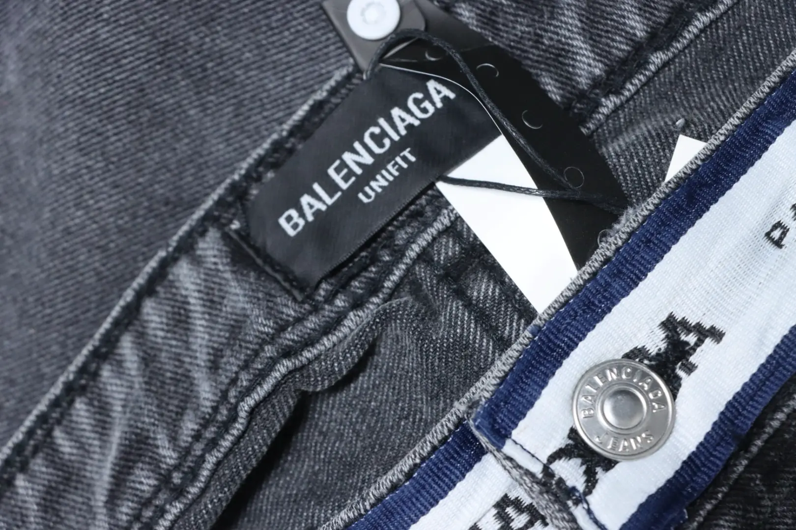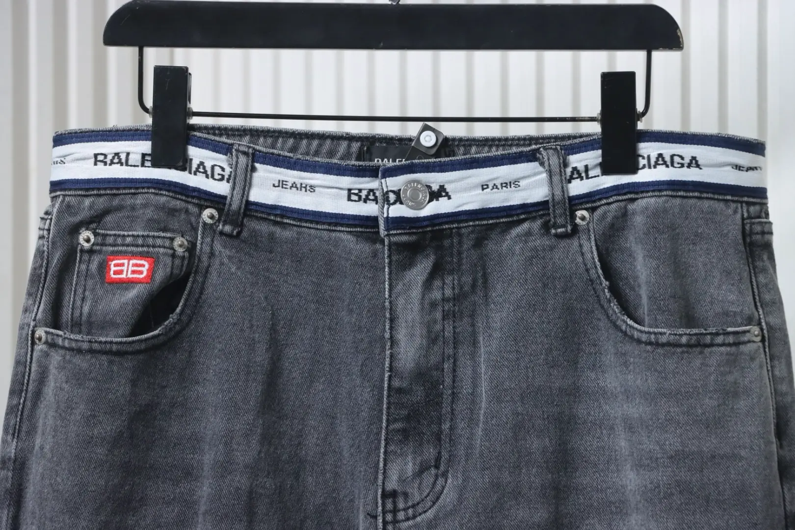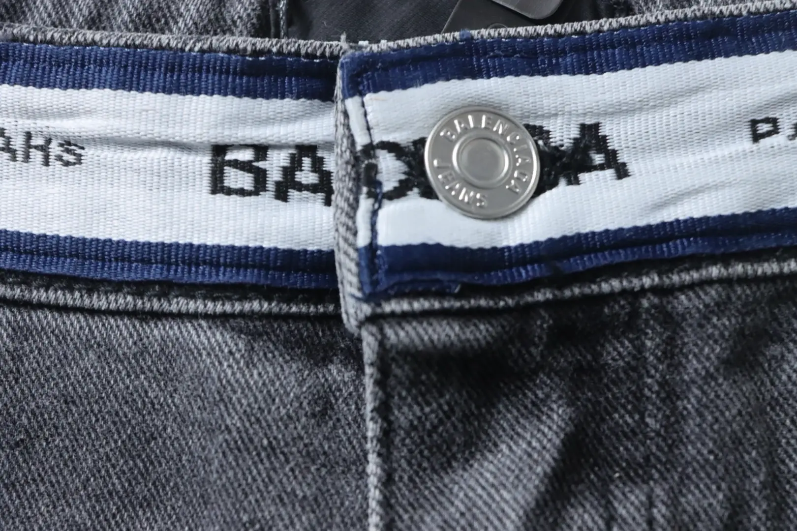 Balenciaga-Jeanshose mit Schriftzug-Gurtband an der Taille