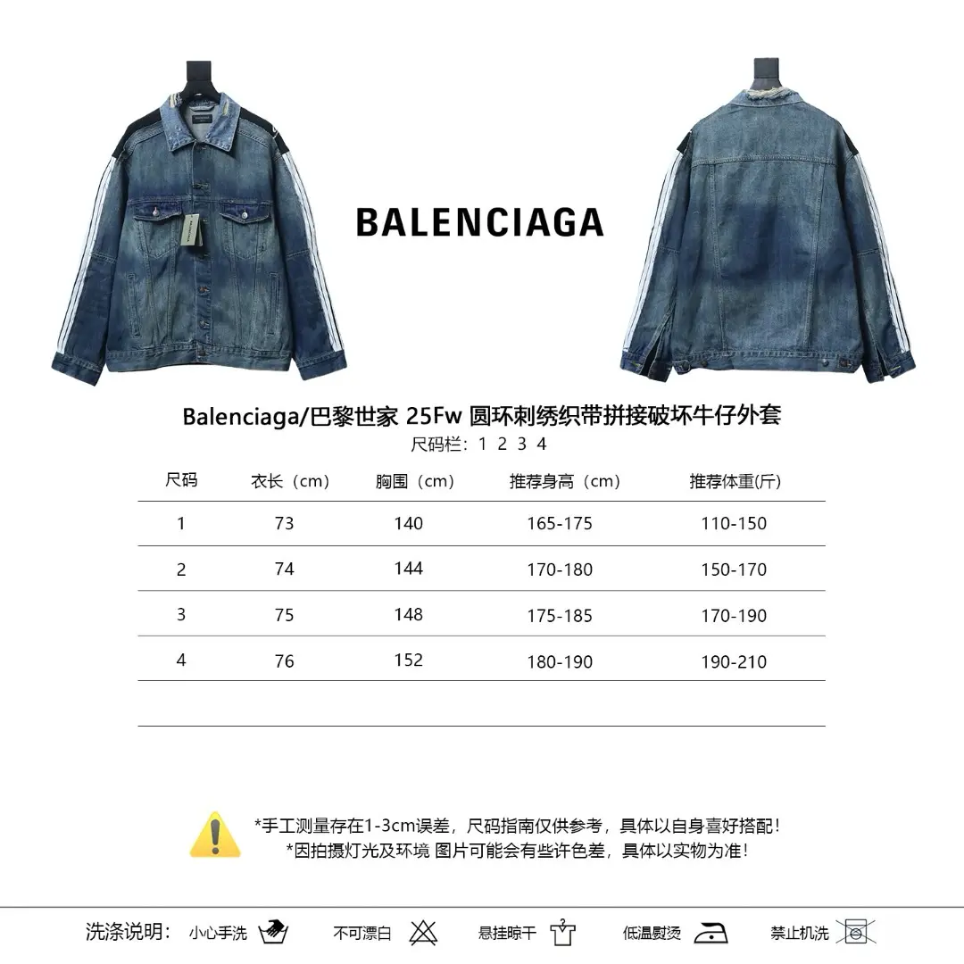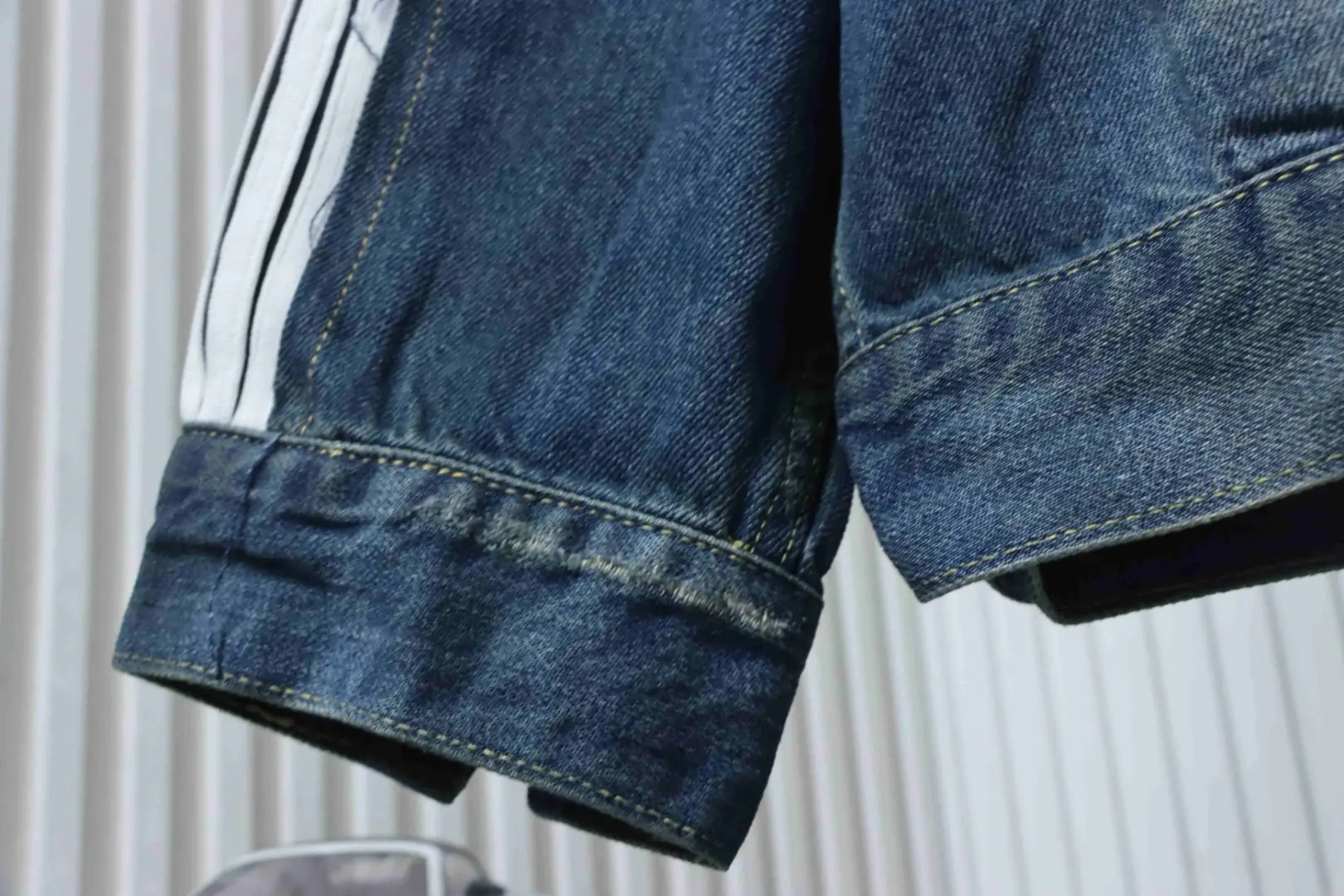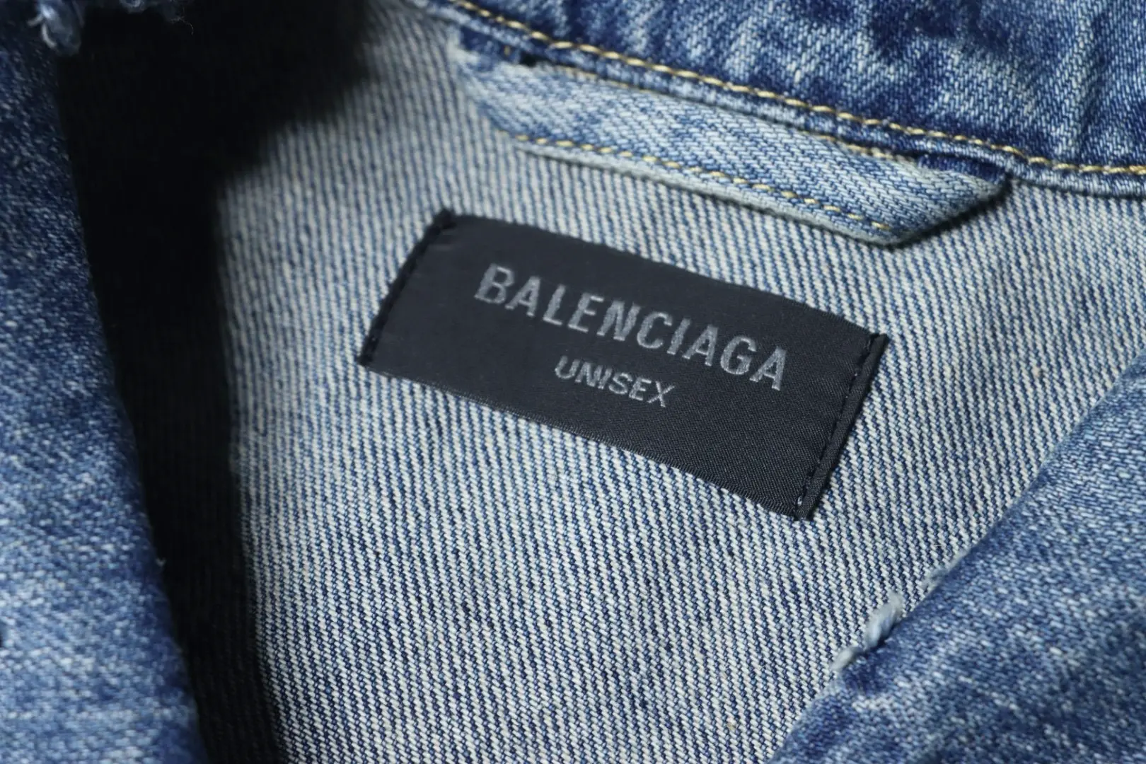 Balenciaga Jeansjacke im Used-Look mit kreisförmigem, besticktem Band-Patchwork