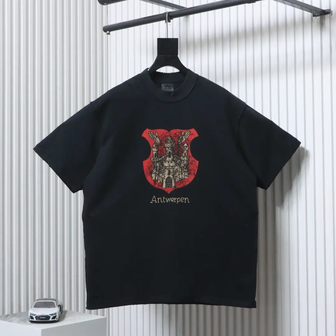 Balenciaga SS24 Castle Print Distressed Short-Sleeve T-Shirt