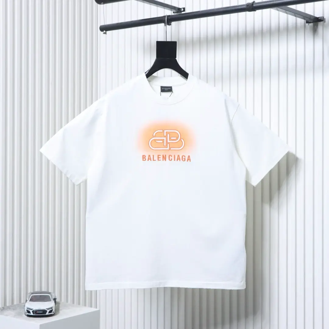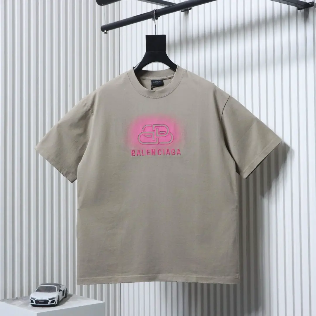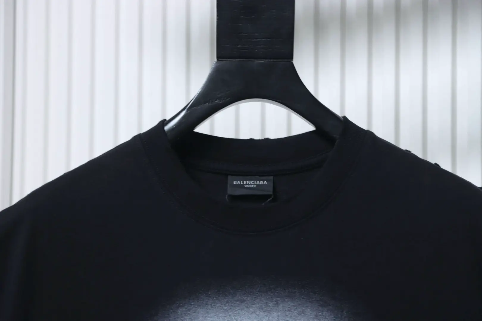 Balenciaga-T-Shirt mit gesticktem Schriftzug und im Tintenstrahldruckverfahren aufgebrachtem Used-Look und kurzen Ärmeln
