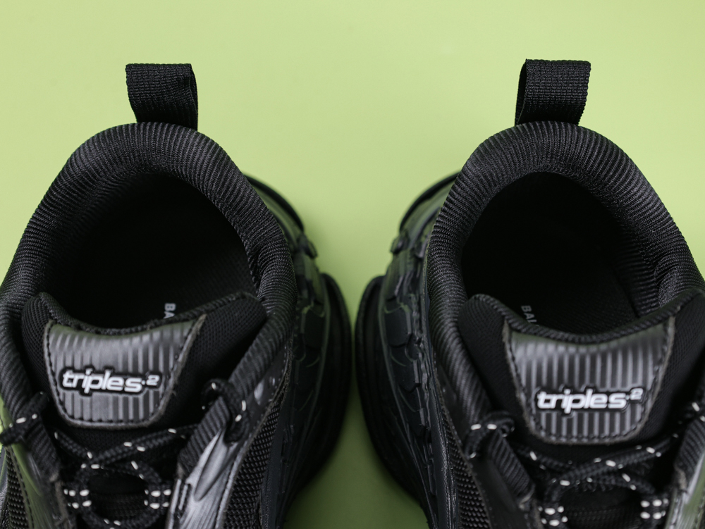 Der Balenciaga Triple S.2 Sneaker in Schwarz ist eine Weiterentwicklung der legendären „Dad Shoe“-Serie der Marke. Sein markantes, mehrlagiges Design und die dezente schwarze Farbgebung unterstreichen seinen modernen urbanen Stil und vereinen Streetwear und Luxusmode perfekt.