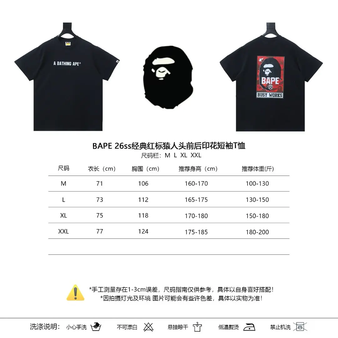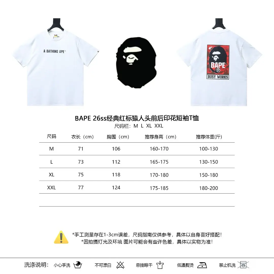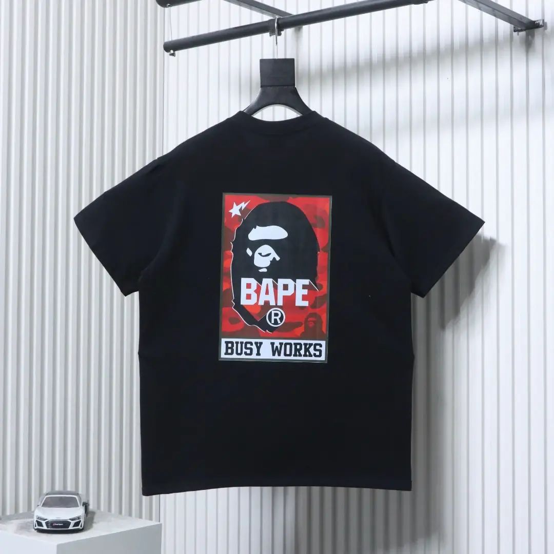 BAPE Classic Red Label Kurzarm-T-Shirt mit Affenkopf-Print M-XXL