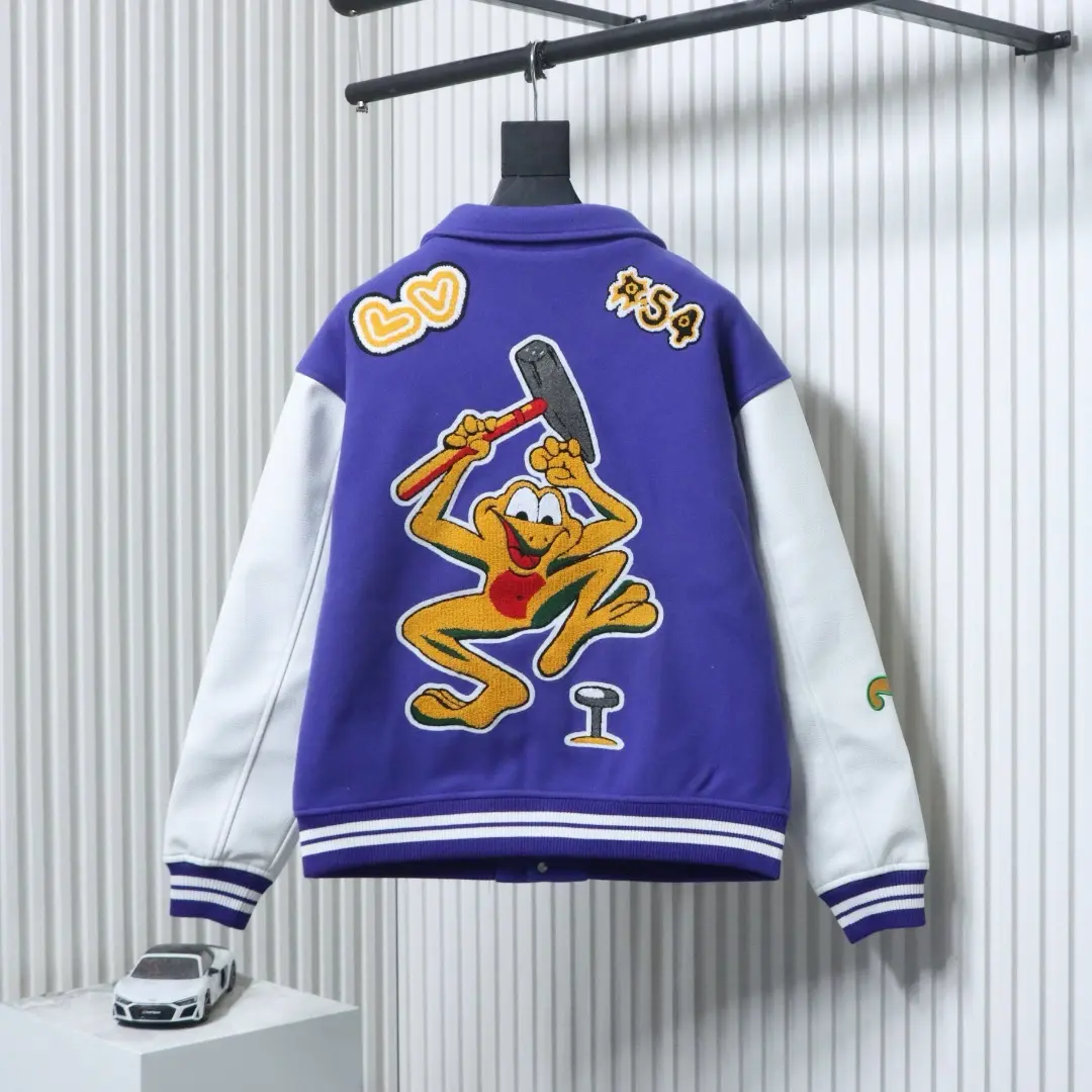 Baseballjacke mit Froschmotiv und Handtuchstickerei