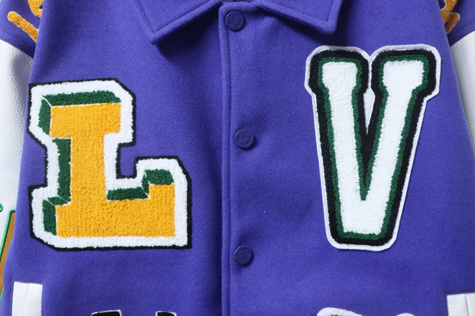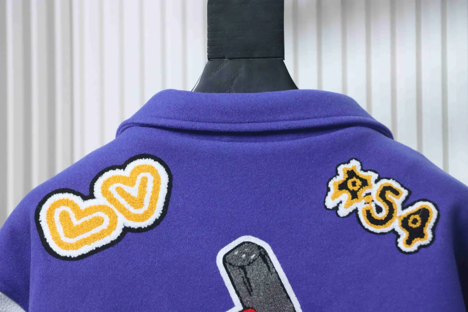 Baseballjacke mit Hufeisenstickerei und Patchwork-Muster