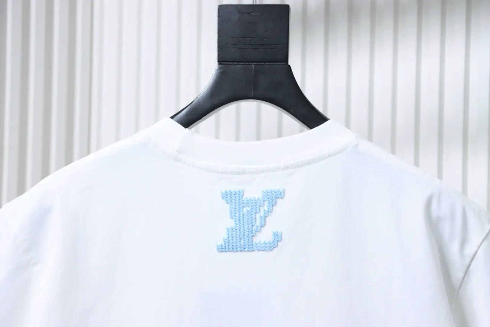 Blaues Kurzarmhemd mit gesticktem Buchstaben