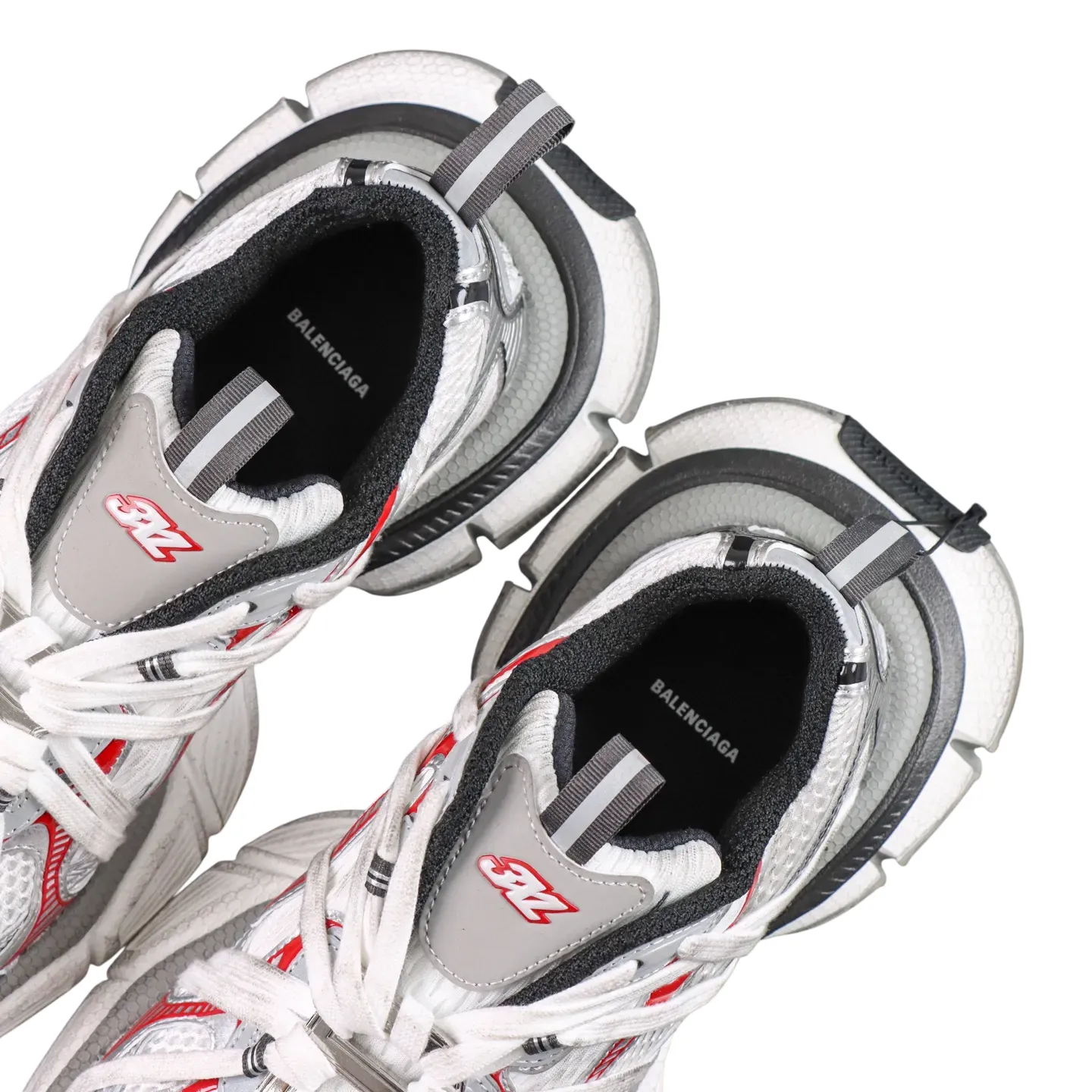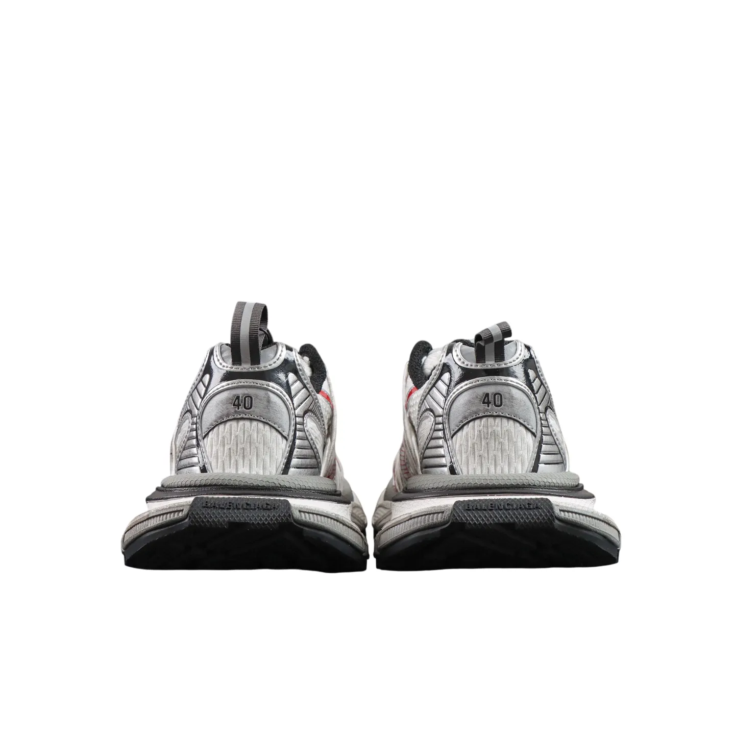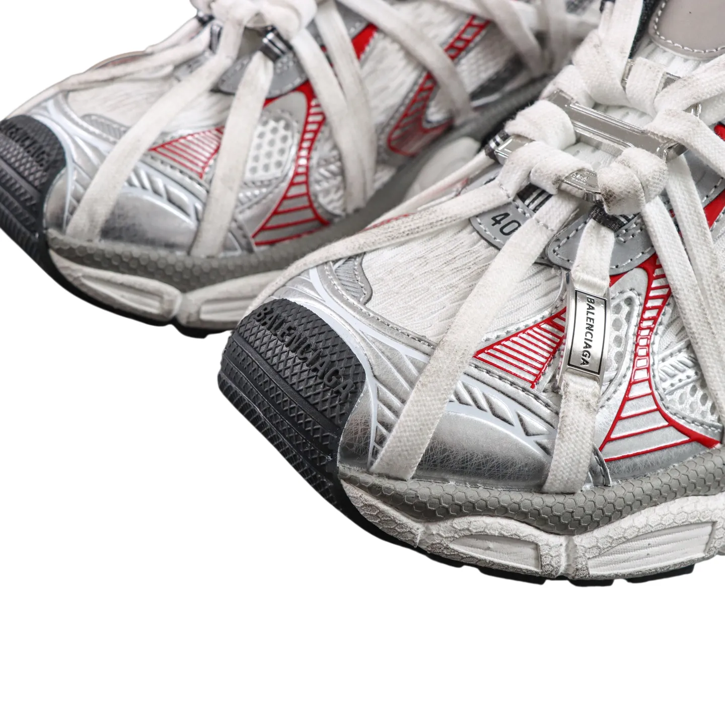 Werten Sie Ihre Streetwear mit dem Balenciaga 3XL Extreme Laces B in Silbergrau und Rot auf. Dieser moderne Dad Shoe vereint die markante Silhouette des Balenciaga Runner mit einem leichten Design und einer breiten, konvexen Sohle für extra Höhe ohne schweres Gewicht. Dank weicher Schaumstoff-Technologie bietet er ganztägigen Komfort und wird für ein erstklassiges Erlebnis in der originalgetreuen Box geliefert.