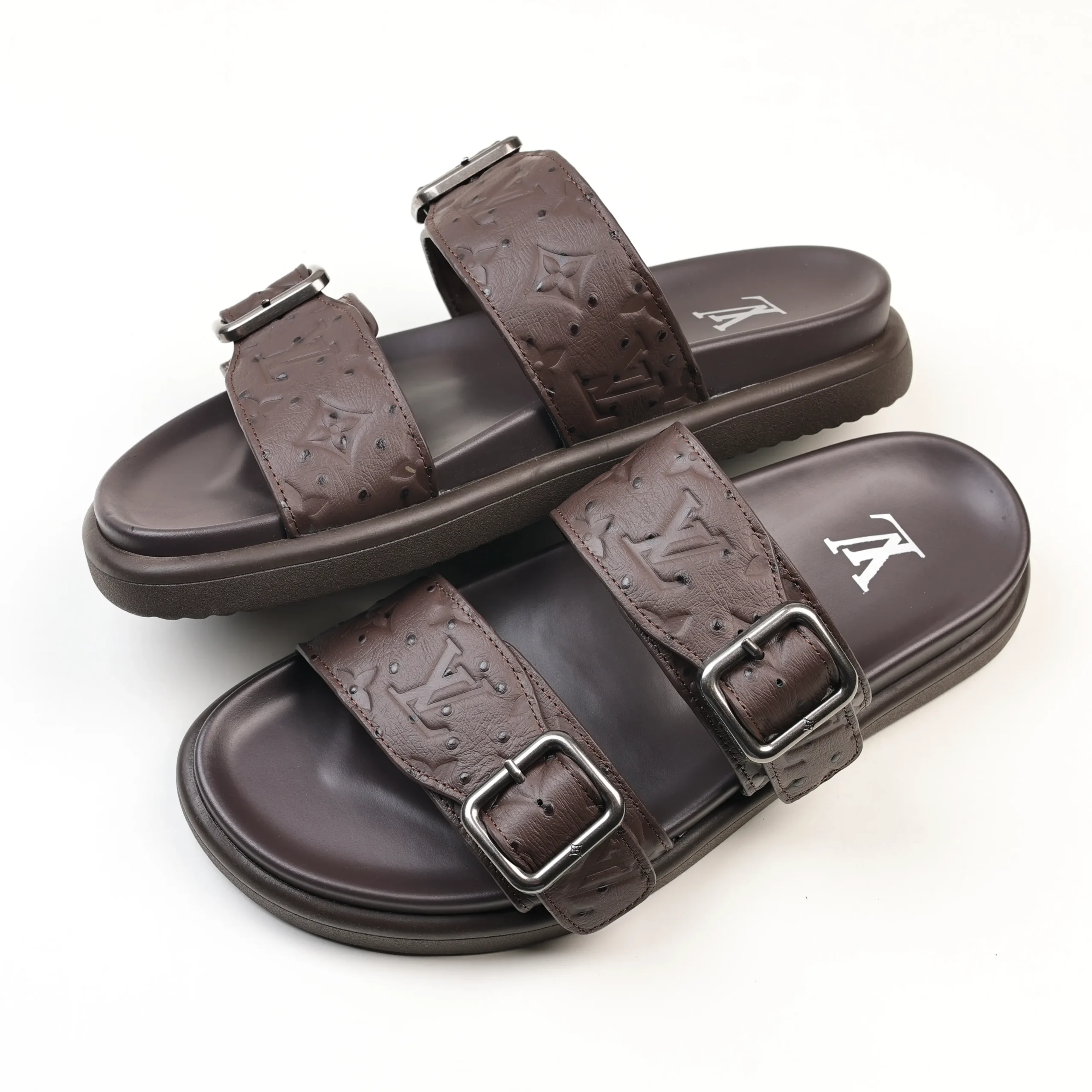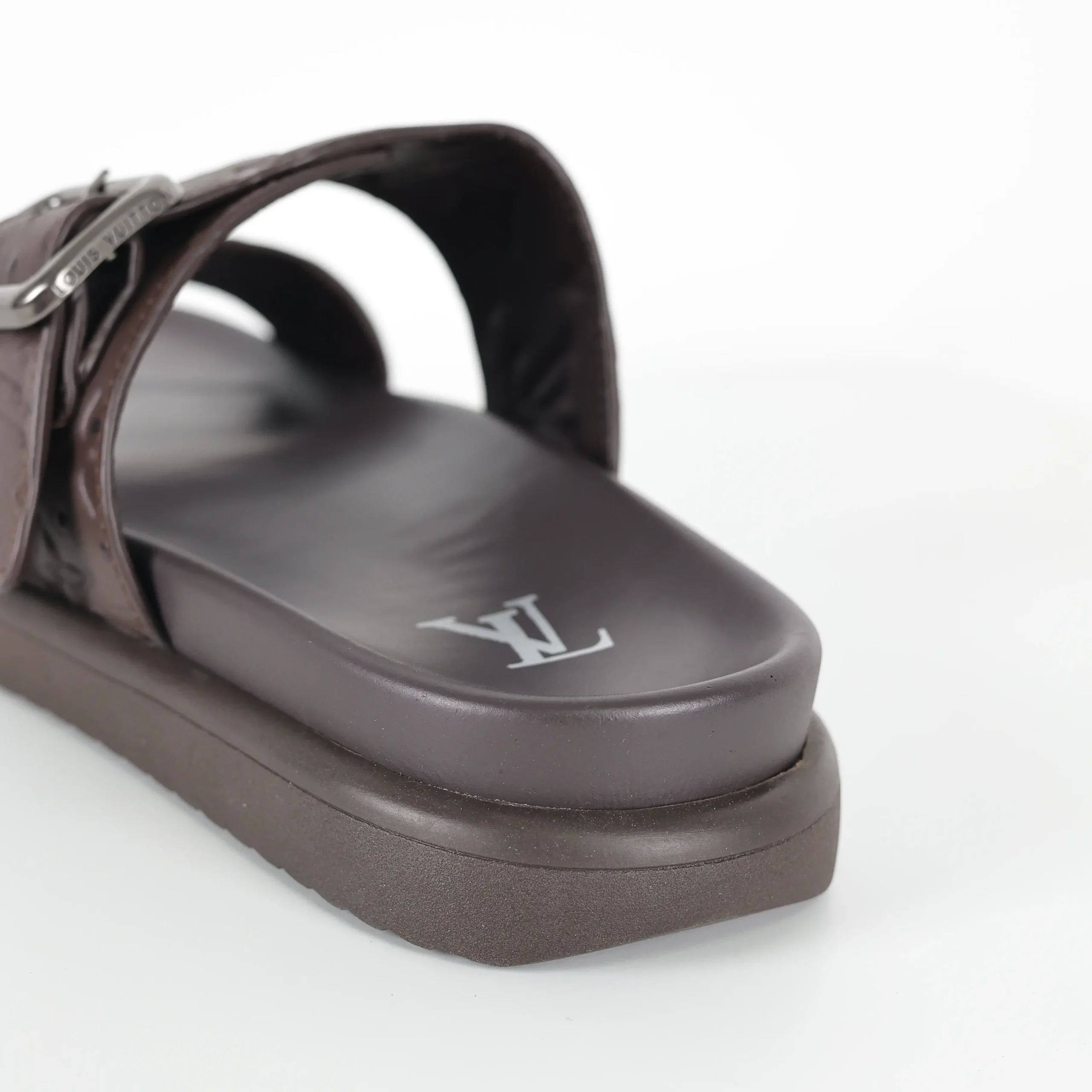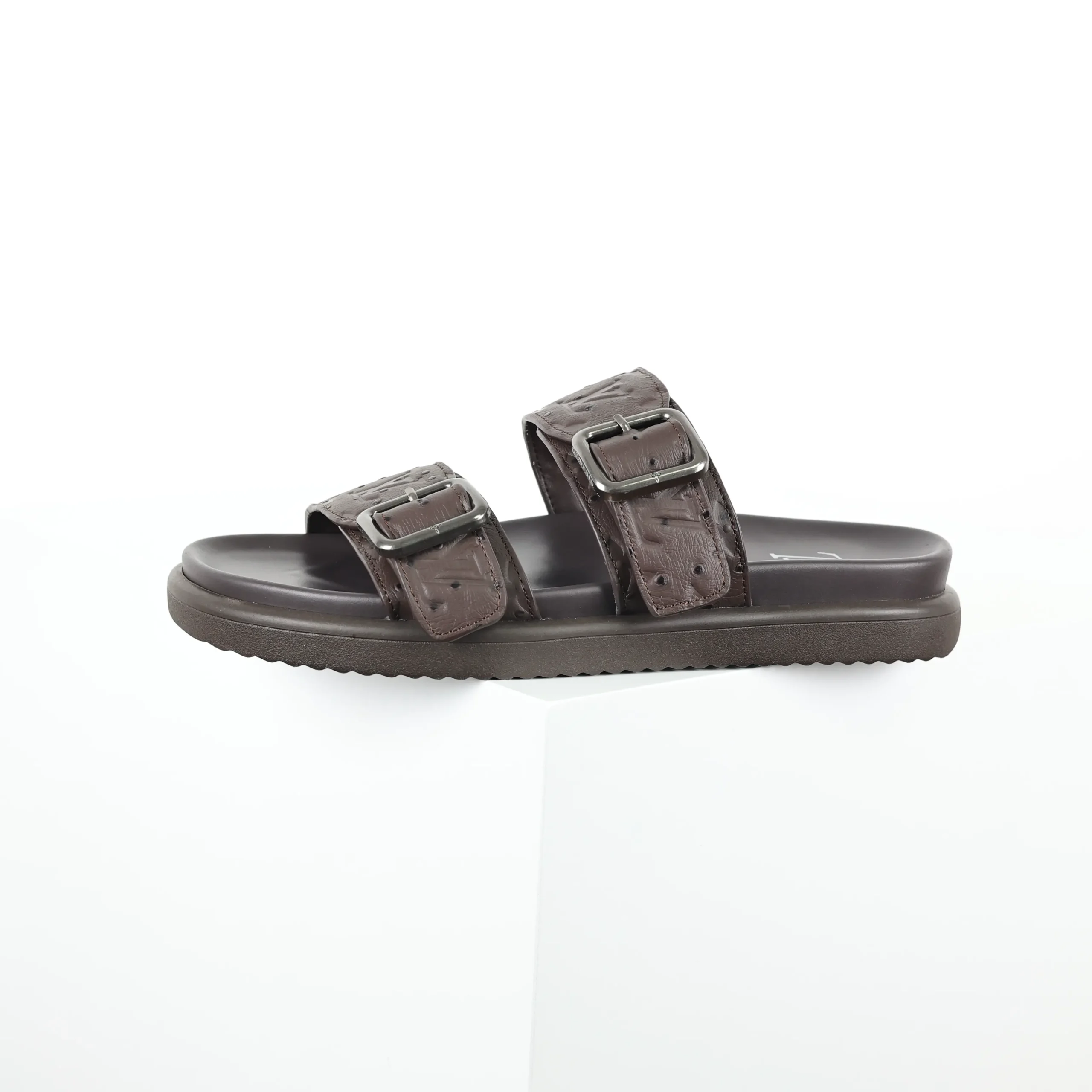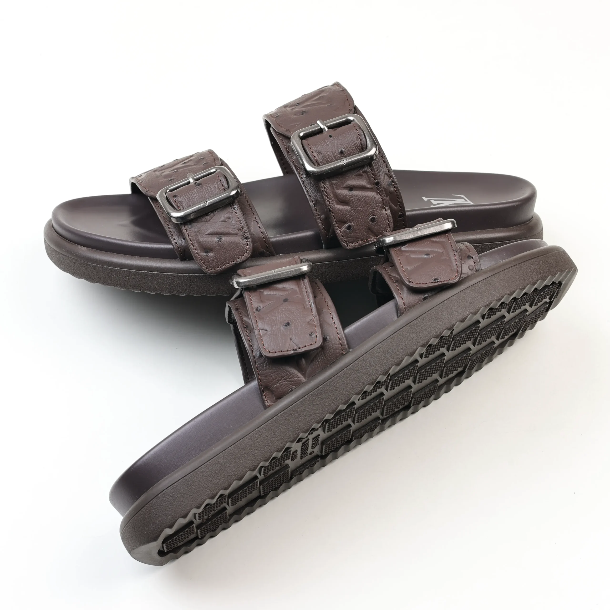 Oasis-Serie, flache Pantoletten aus Straußenleder für Herren, braune Farbe