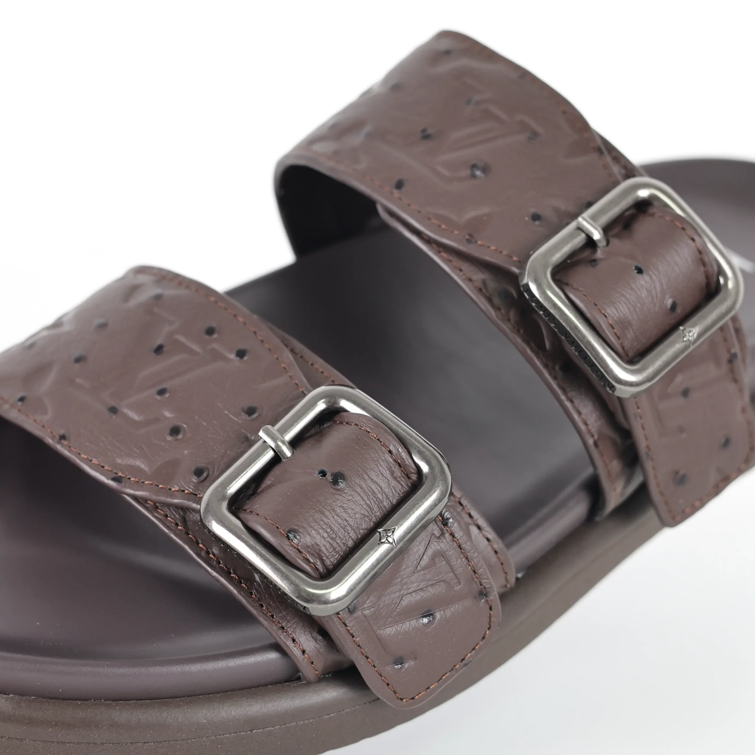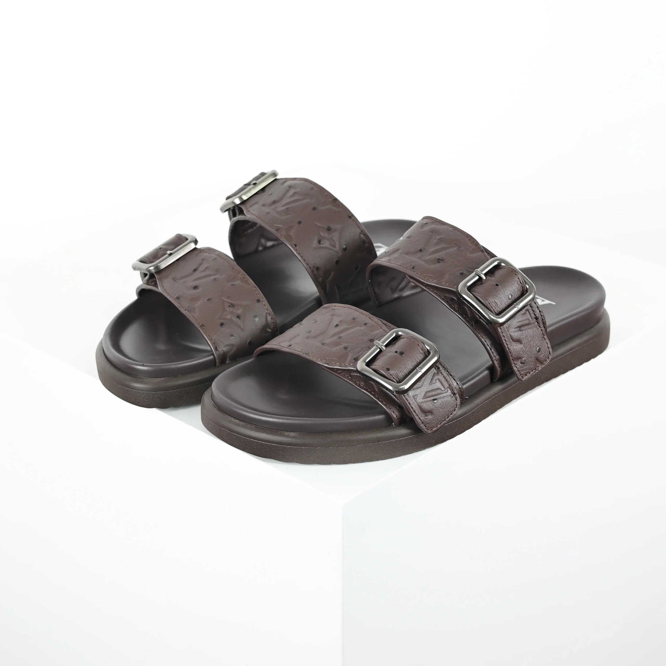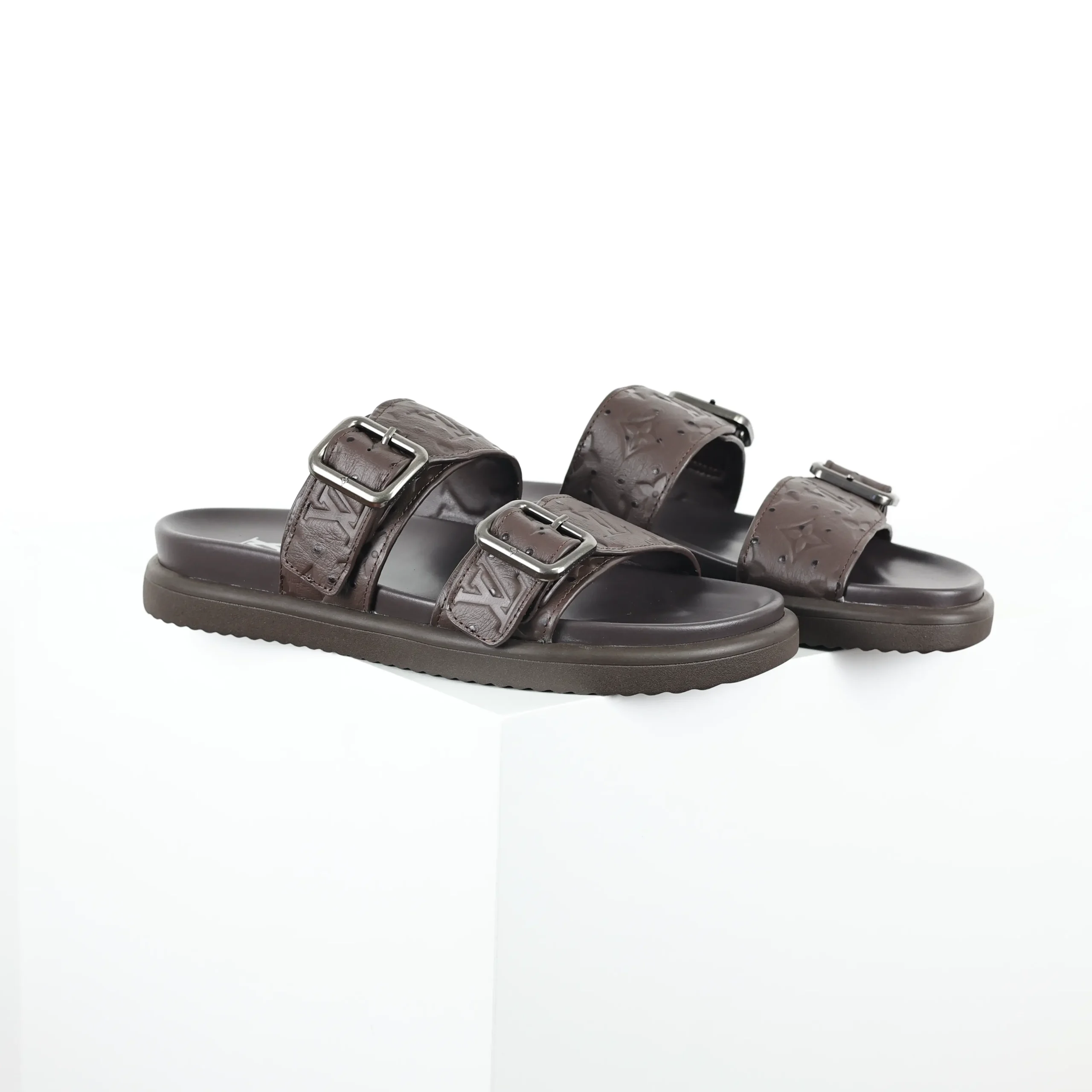 Oasis-Serie, flache Pantoletten aus Straußenleder für Herren, braune Farbe