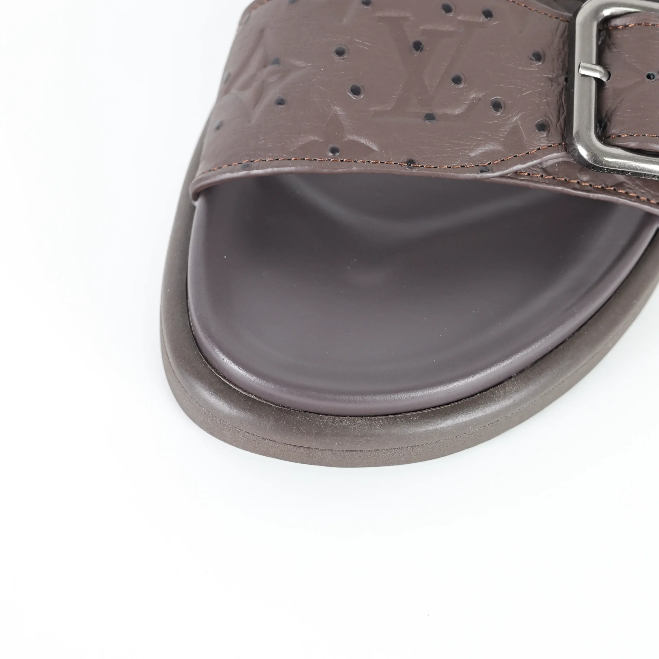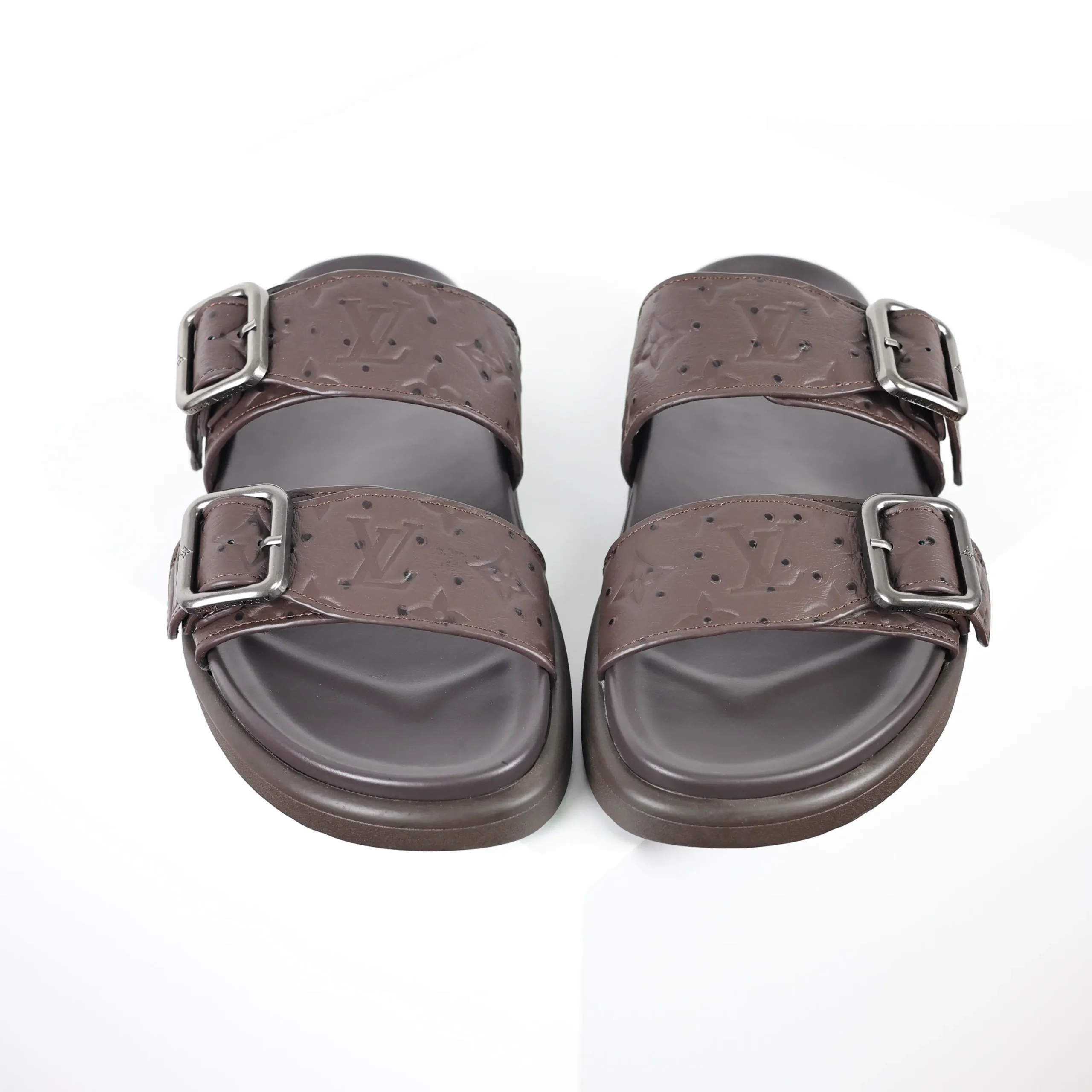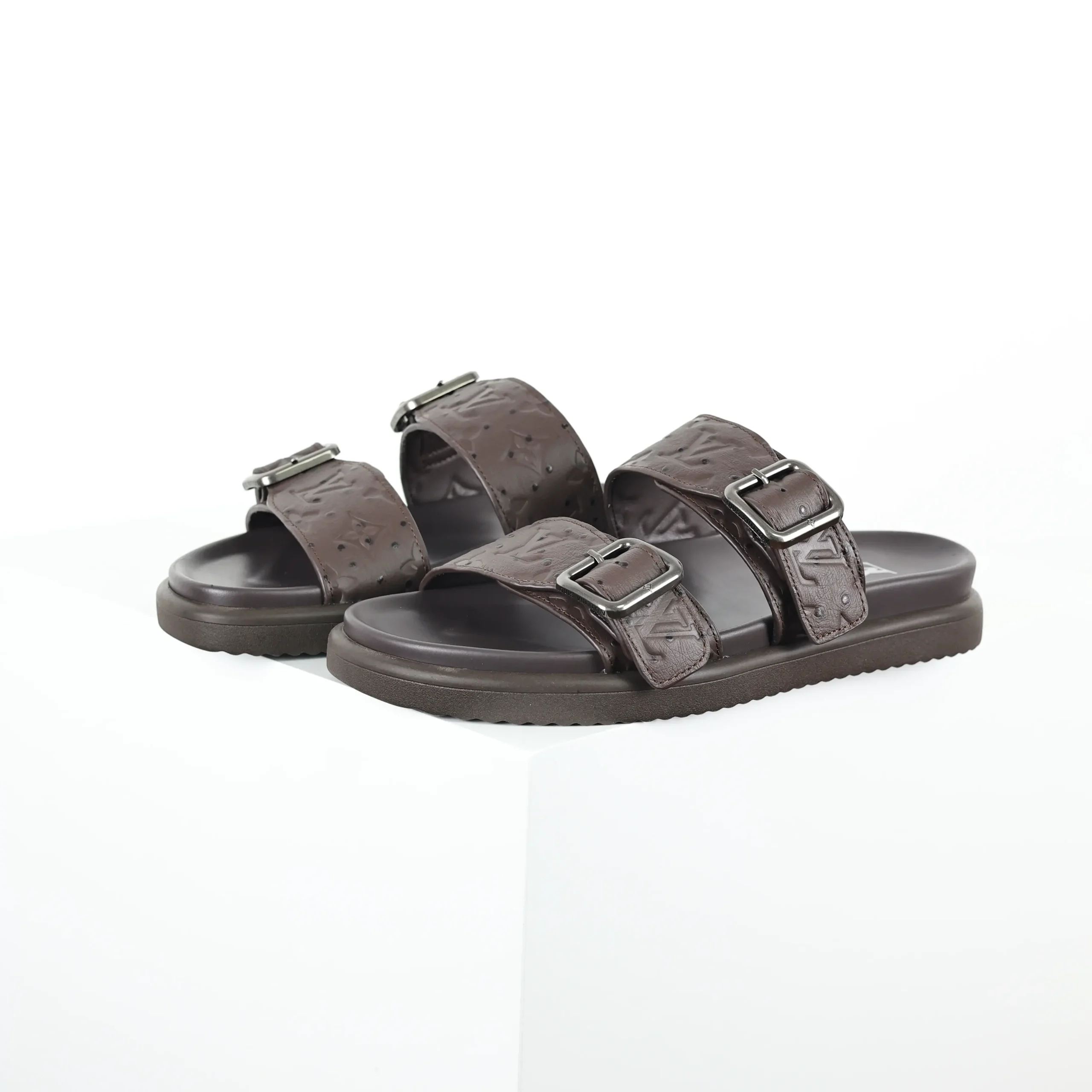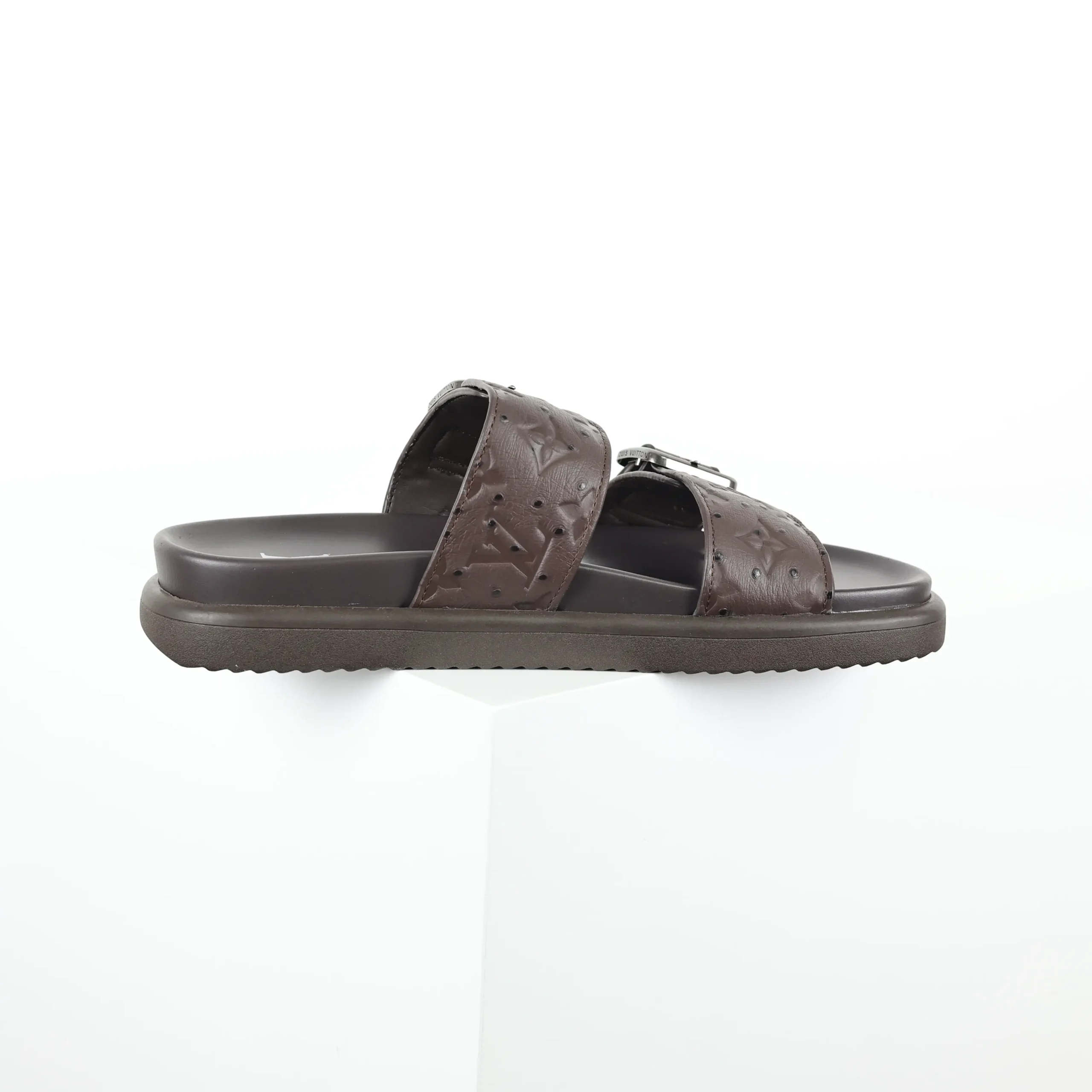 Oasis-Serie, flache Pantoletten aus Straußenleder für Herren, braune Farbe