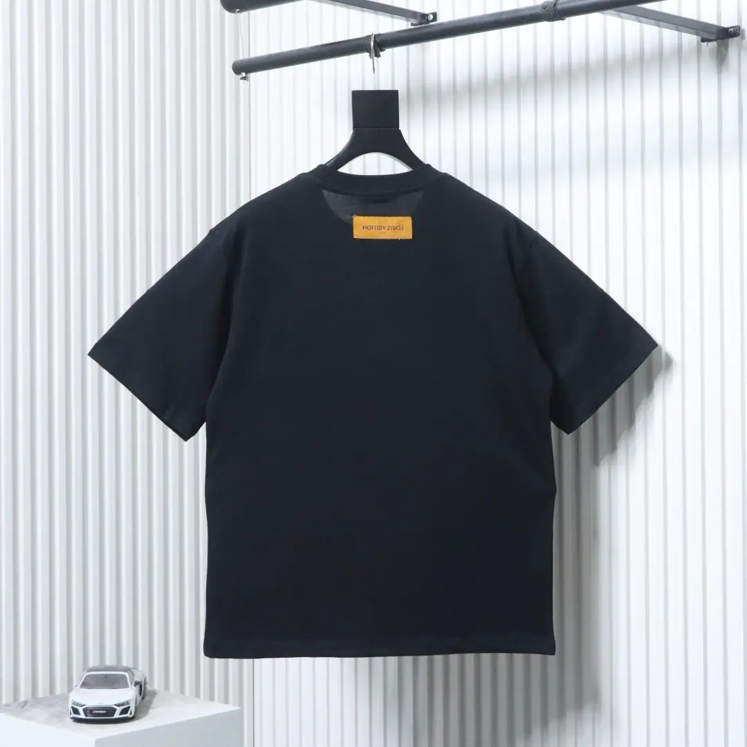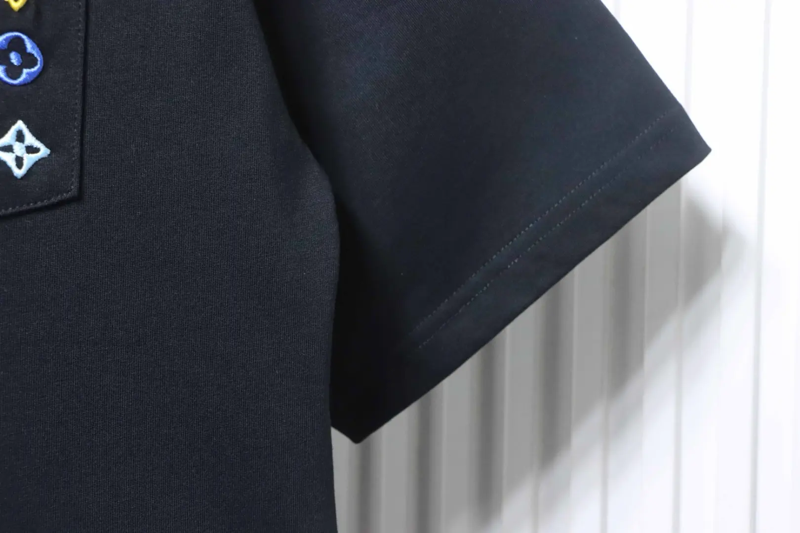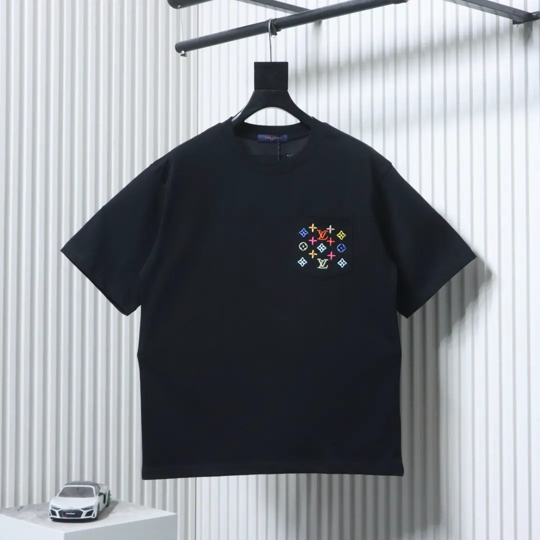 Buntes, monogrammiertes Kurzarm-T-Shirt mit farbenfroher Stickerei in der Tasche