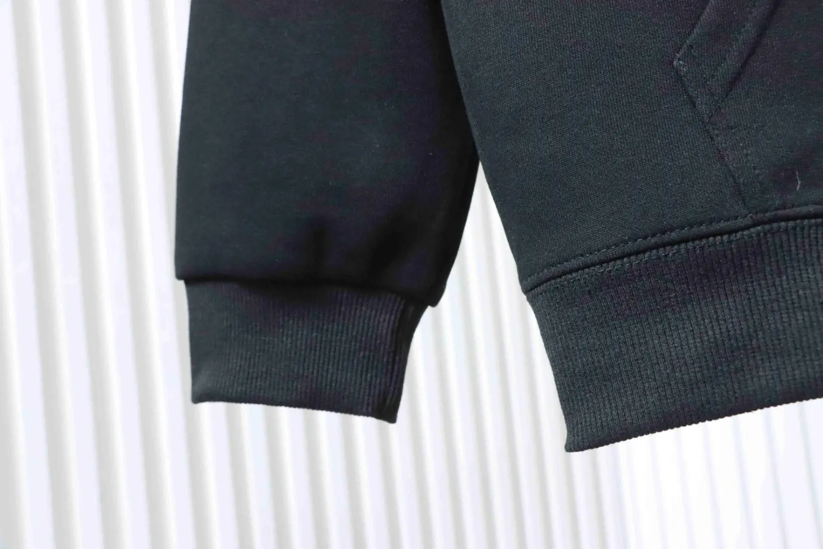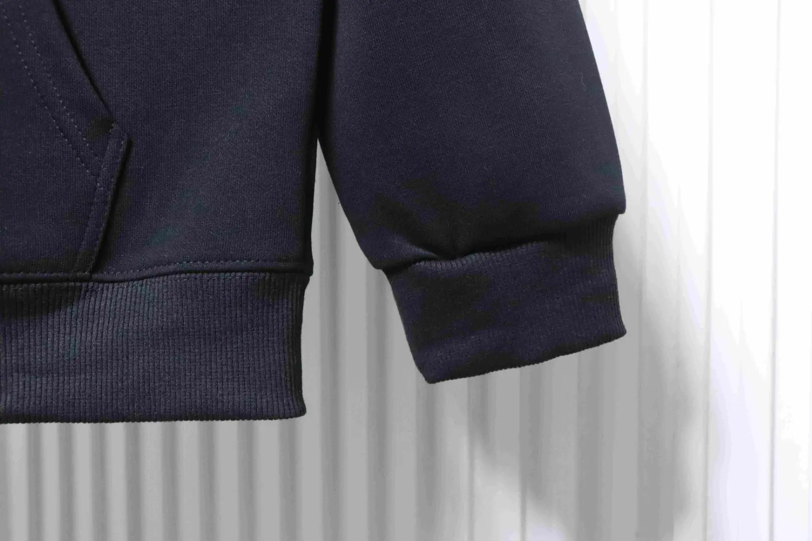 - Die Struktur des dichten Materials ist deutlich sichtbar. Weichheit und Komfort stehen im Vordergrund, doch die perfekte Balance aus Atmungsaktivität und Wärme ist eine positive Überraschung. Es fühlt sich nicht stickig an und ist zudem winddicht. Dieses Sweatshirt ist eine Investition in Qualität.