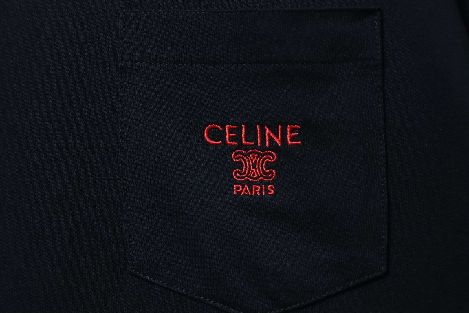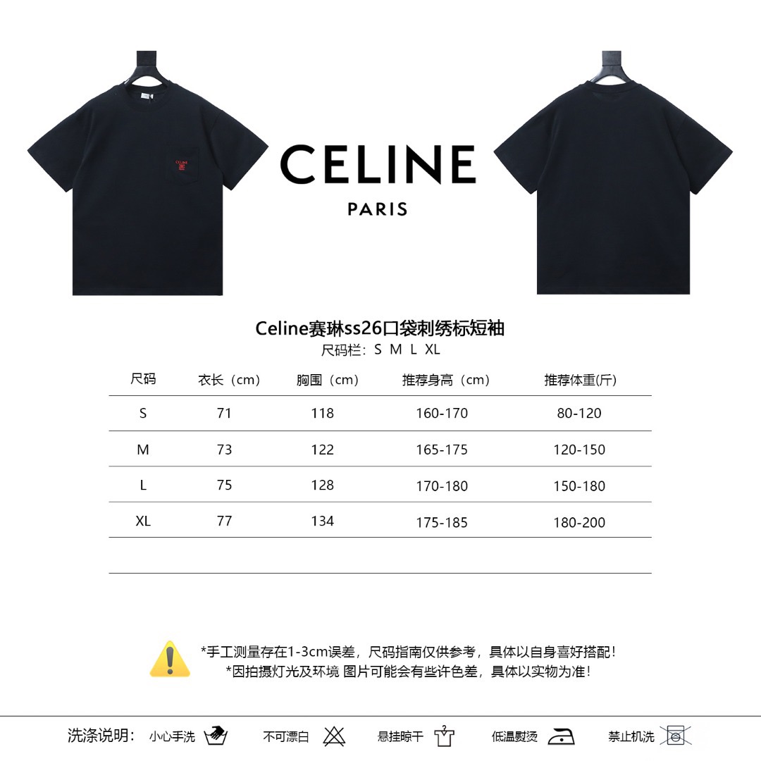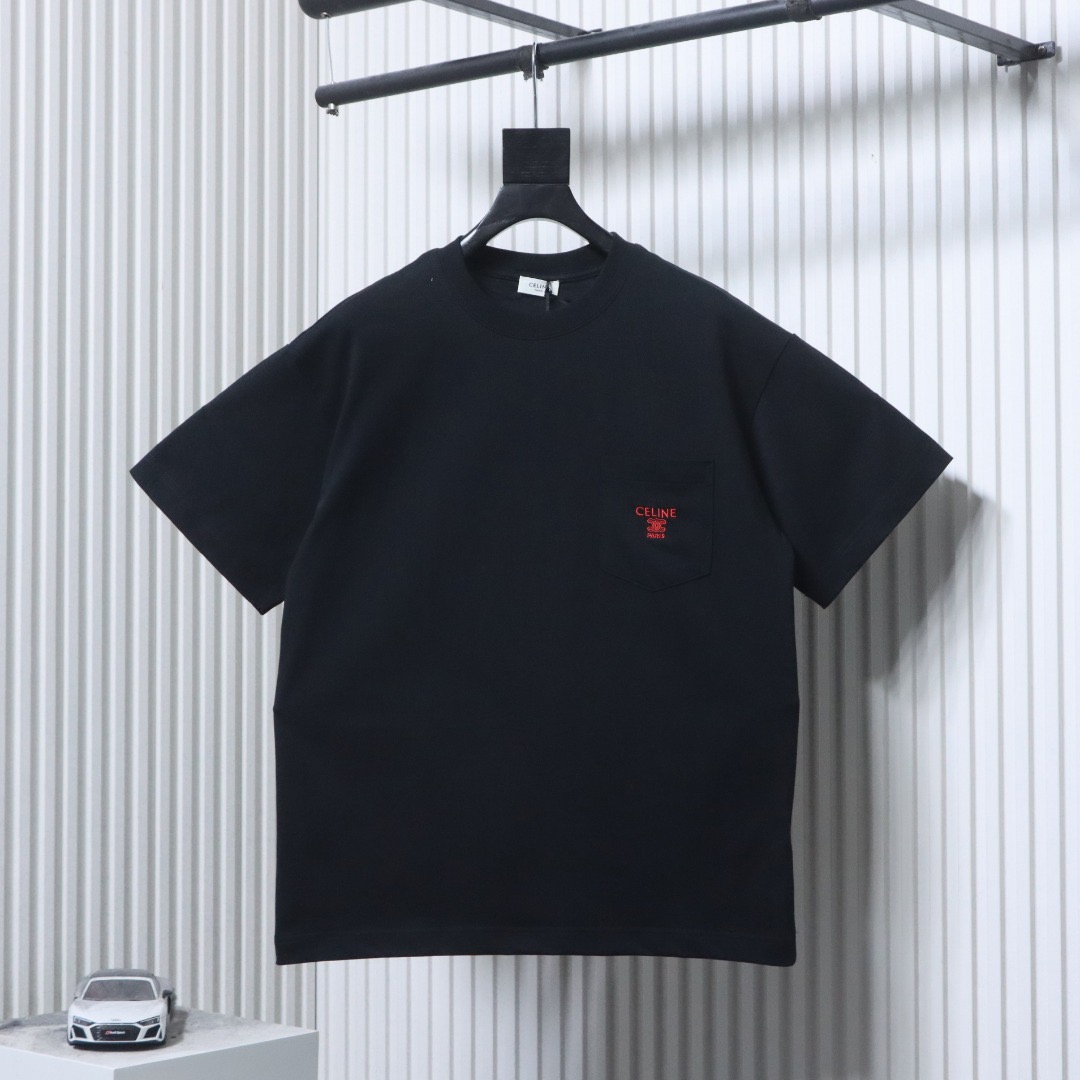Celine Kurzarm-T-Shirt mit gesticktem Taschenlogo