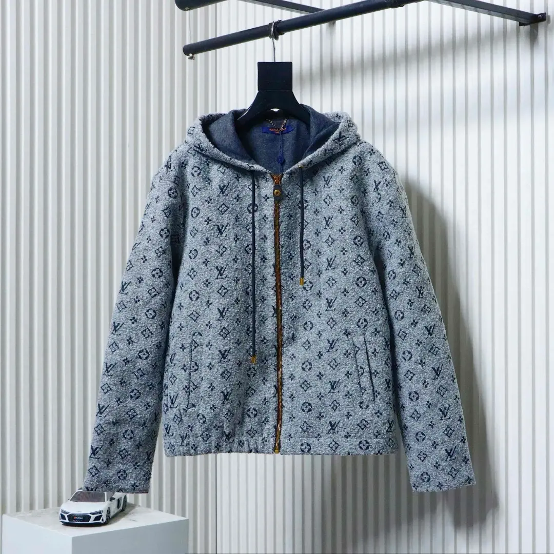 Dengzhu Lederjacke mit Kapuze und Reißverschluss, bedruckt mit Kapuze