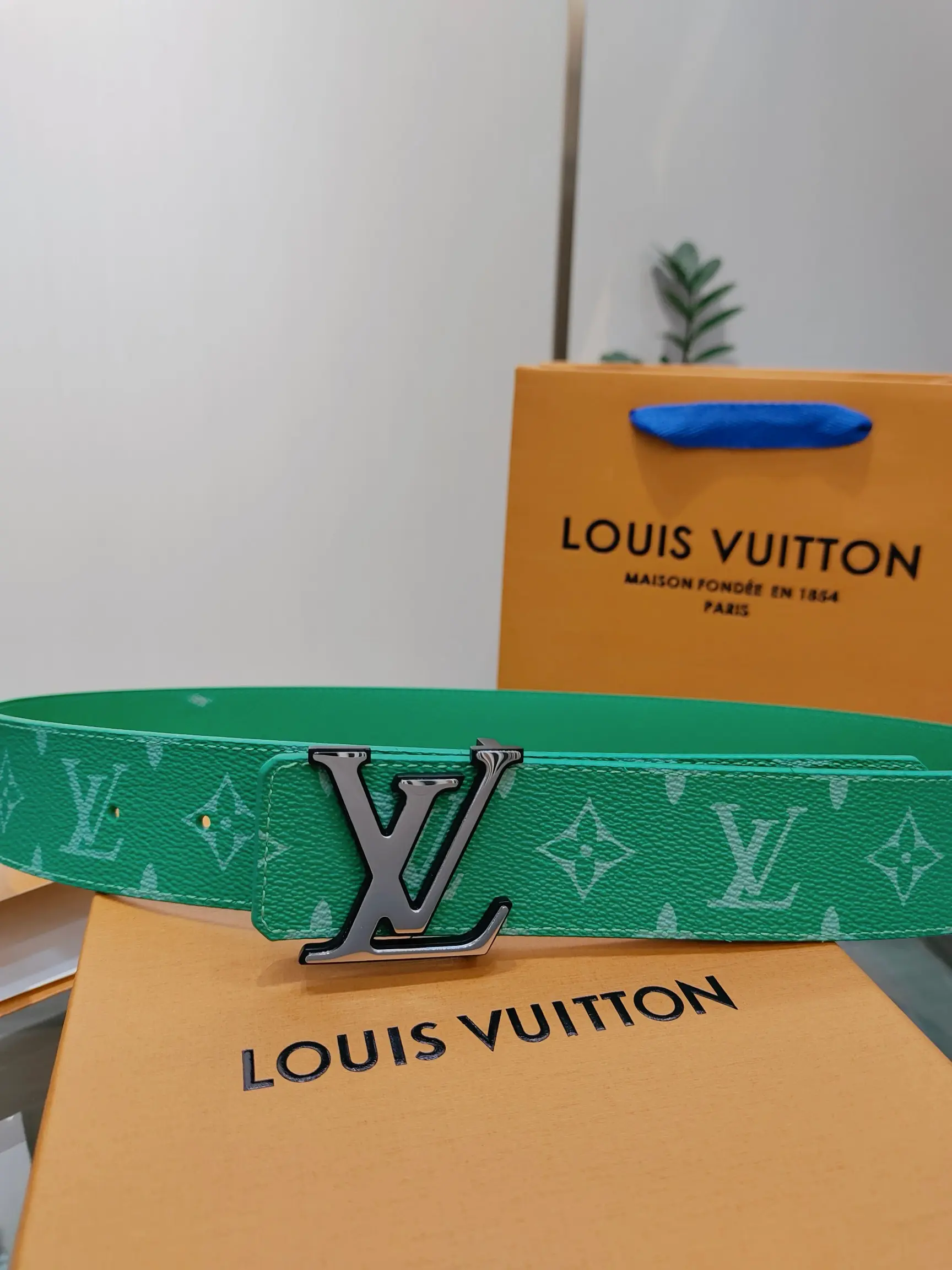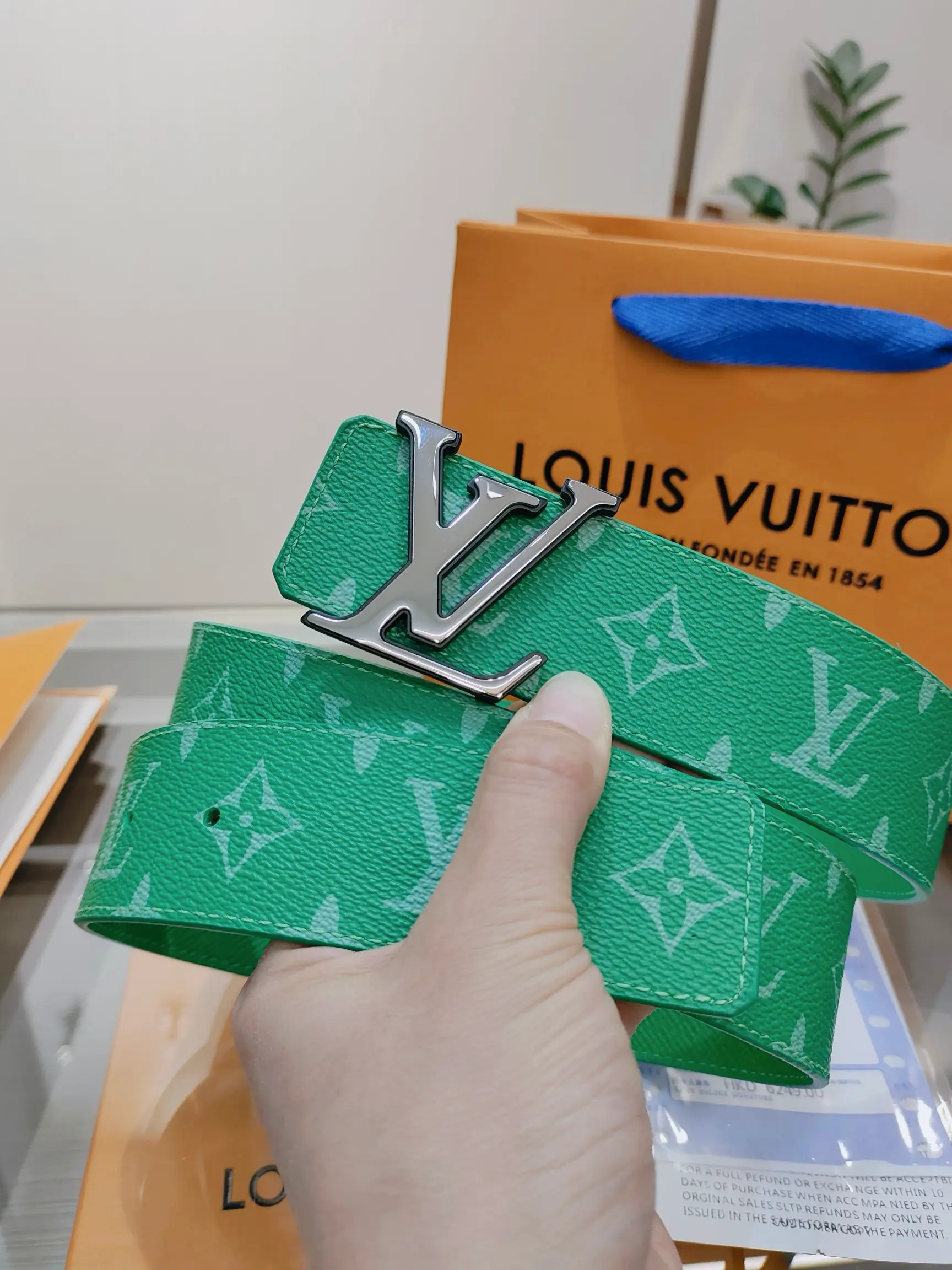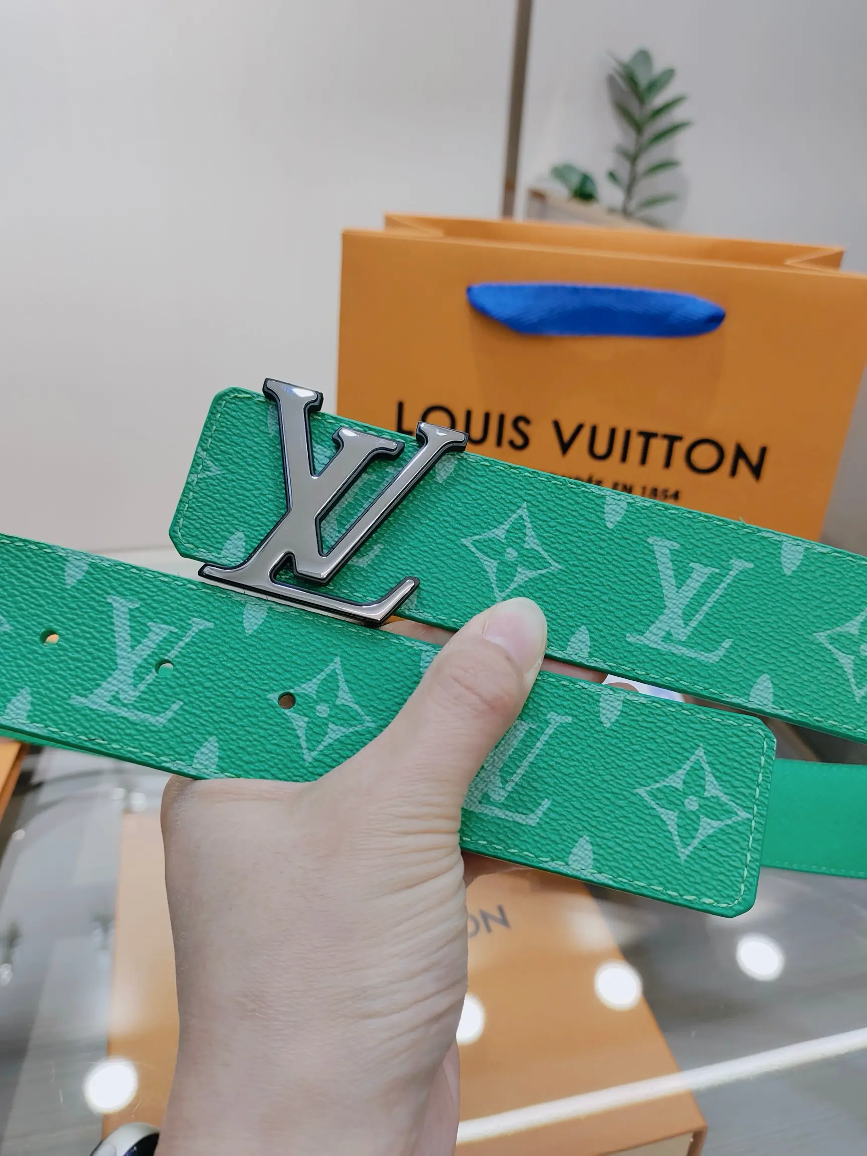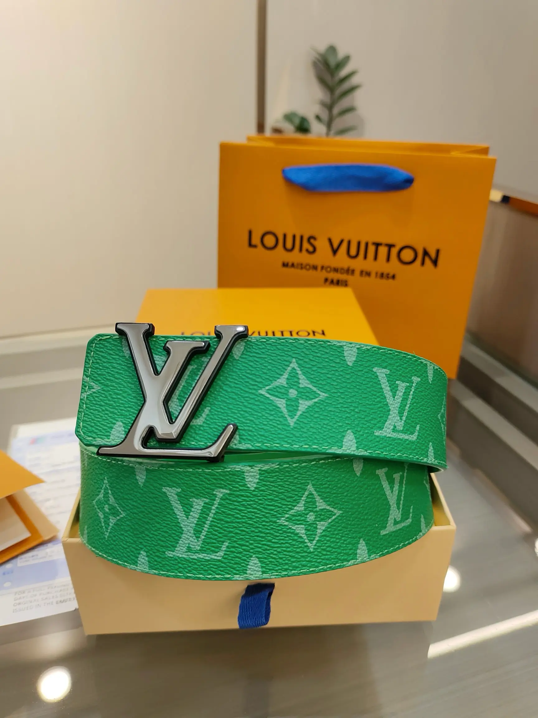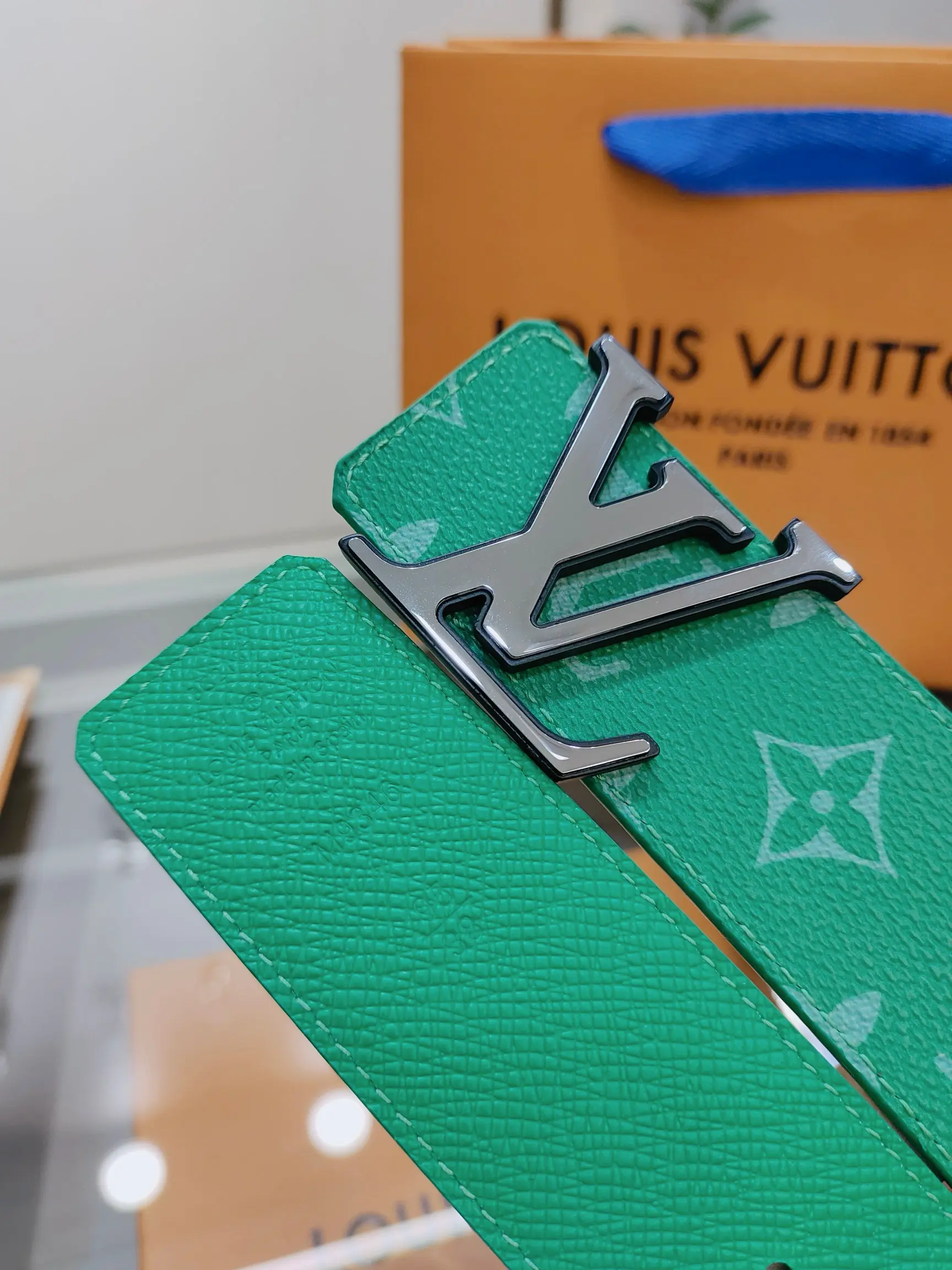 -25%- Dieser wendbare Herrengürtel in Designerqualität ist 40 mm breit und besticht durch ein weiches, hellgraues Kreuzschraffurmuster auf der Monogram Canvas-Seite und eine weiche, hellgraue Lederrückseite.