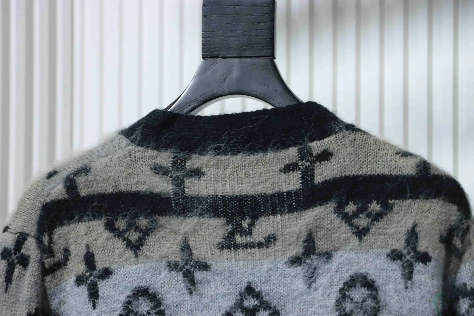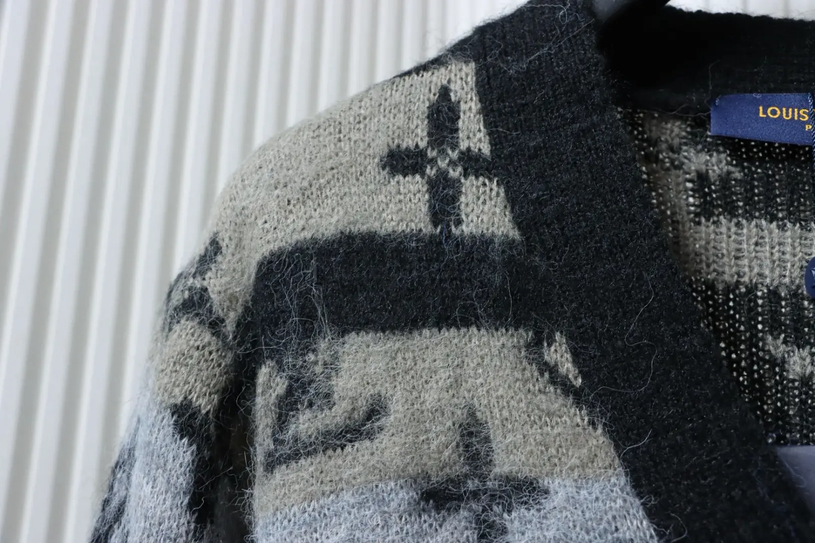 -60%- Hergestellt aus einem speziell gewebten Garn aus Mohair (67 %), Nylon (28 %) und Schafwolle (5 %), wobei importiertes, fein gebürstetes Mohair verwendet wird. Gefertigt aus importiertem Stoll-Garn, ist jede Naht perfekt ausgerichtet. Die schwarzen, weißen und grauen Farbtöne betonen das Monogramm-Muster über die gesamte Breite.