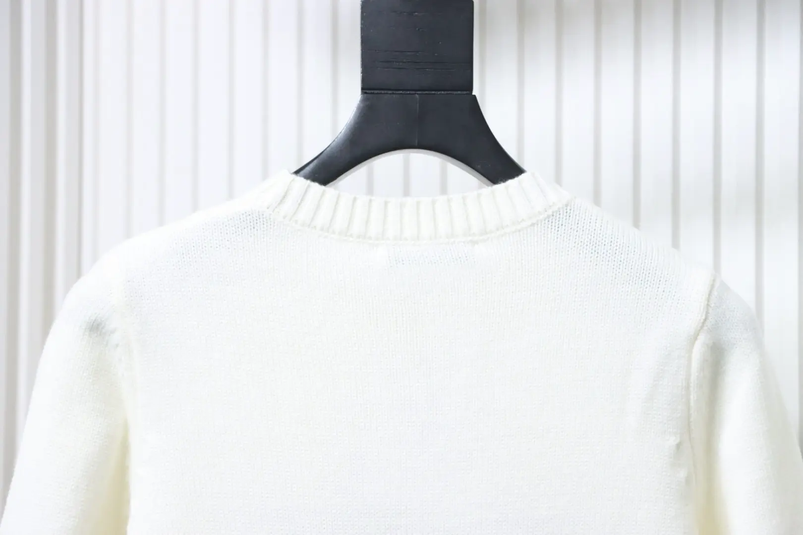 Monet Garden Kreuzstich-Kaschmirpullover mit kurzen Ärmeln
