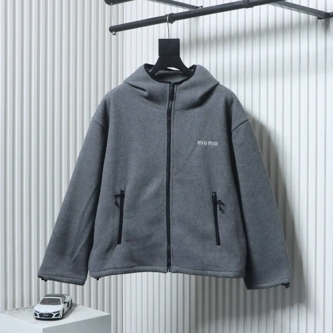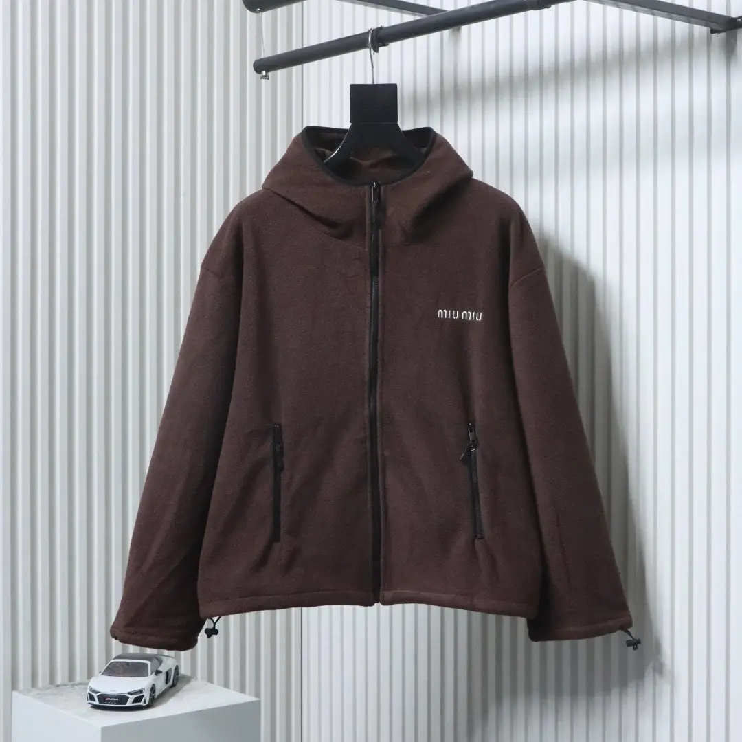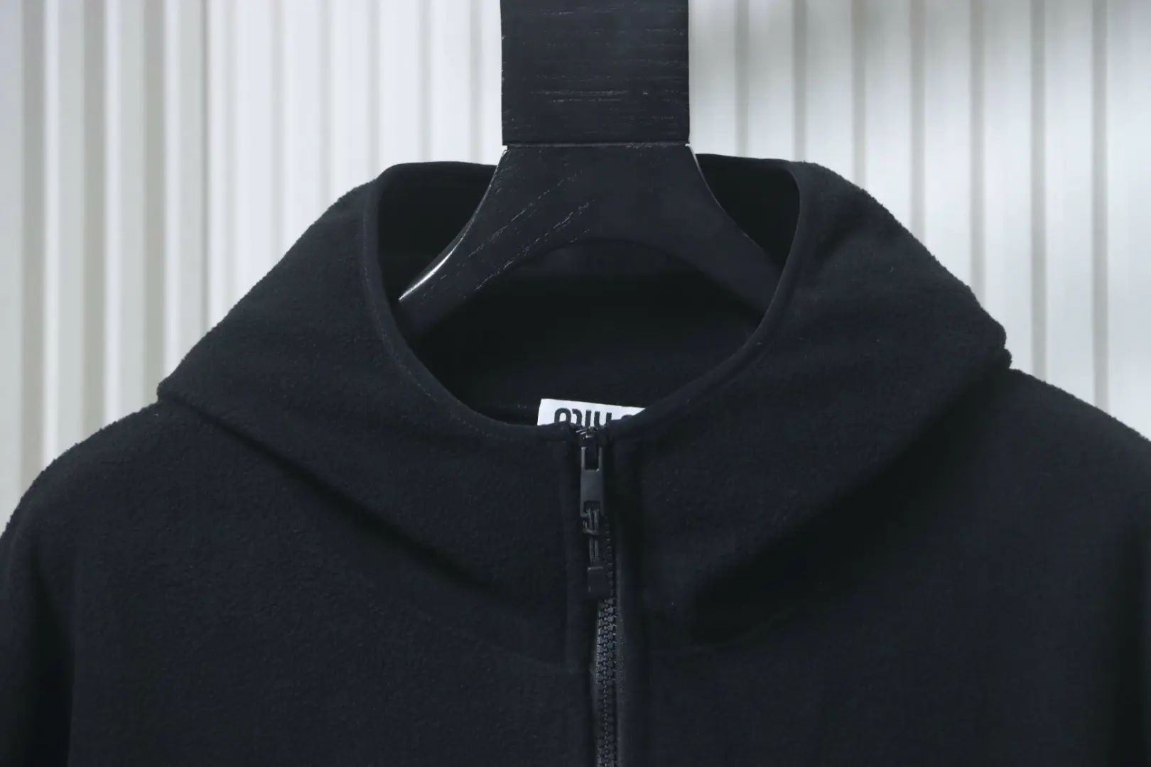 Fleecejacke mit Kapuze und Reißverschluss, besticktes Logo