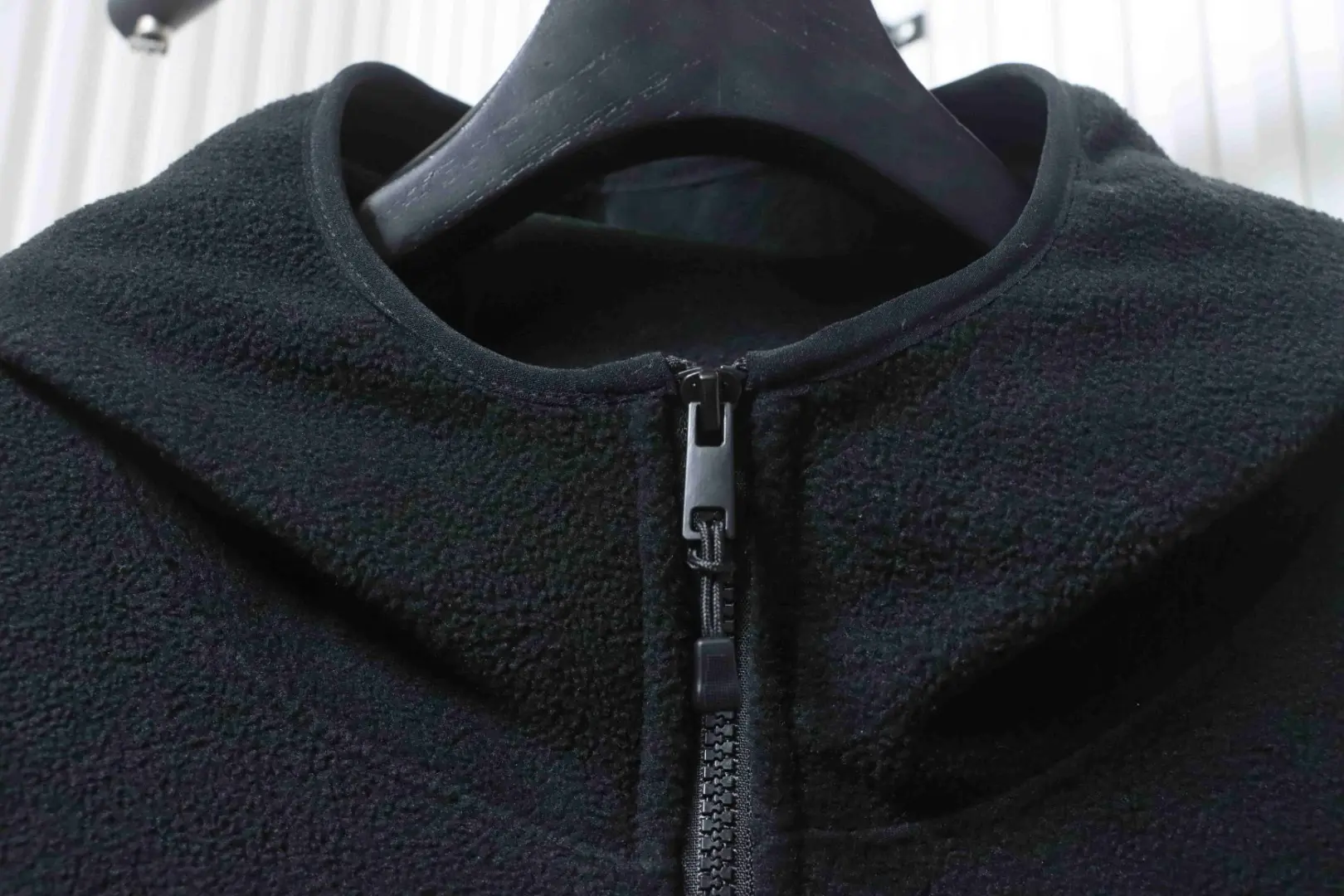 • • Maßgefertigtes Fleece-Gewebe aus 69 % Acryl und 31 % Polyester, besonders schwer, warm und komfortabel.
