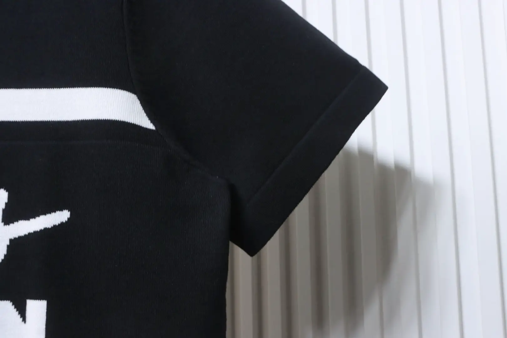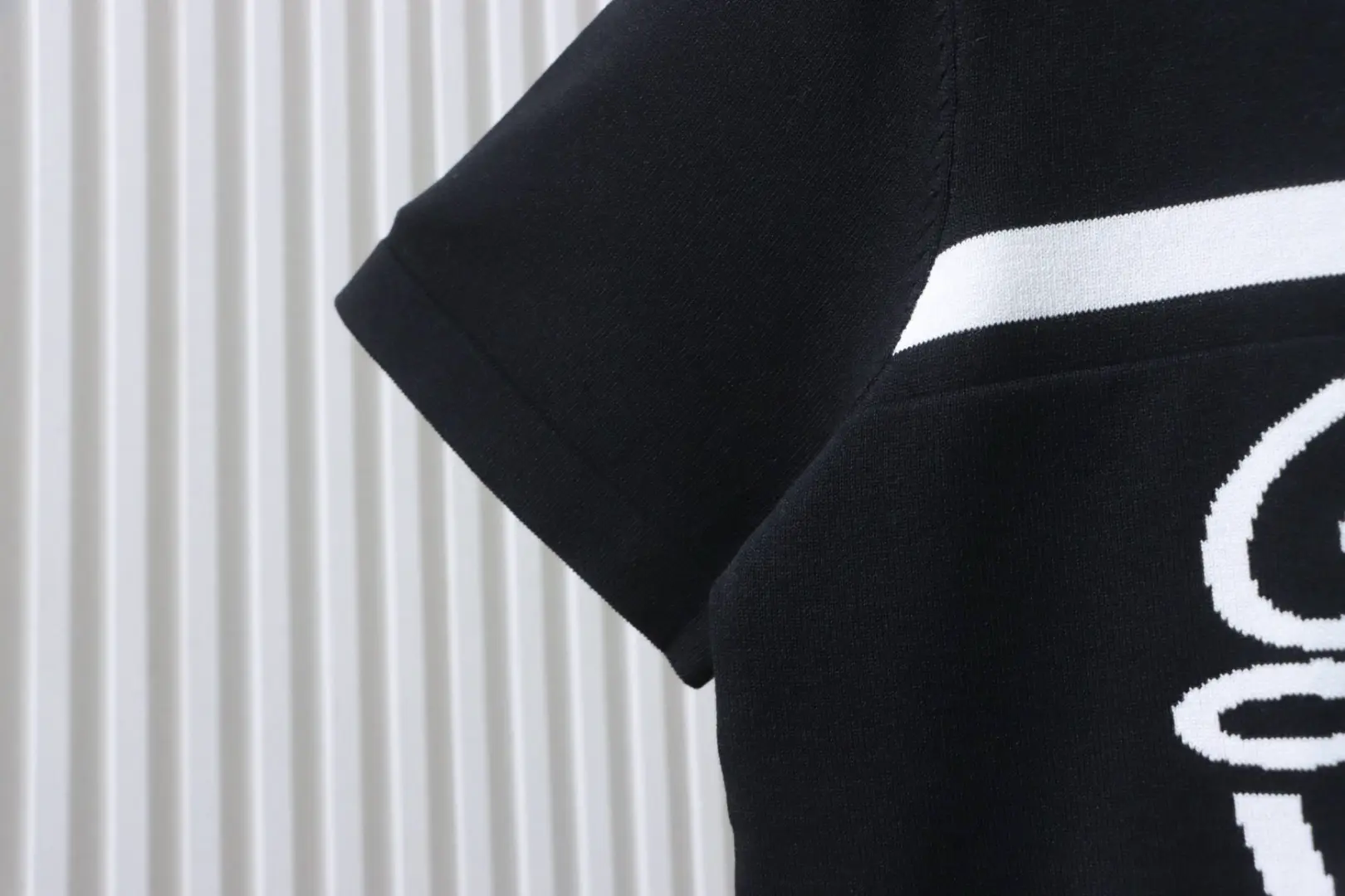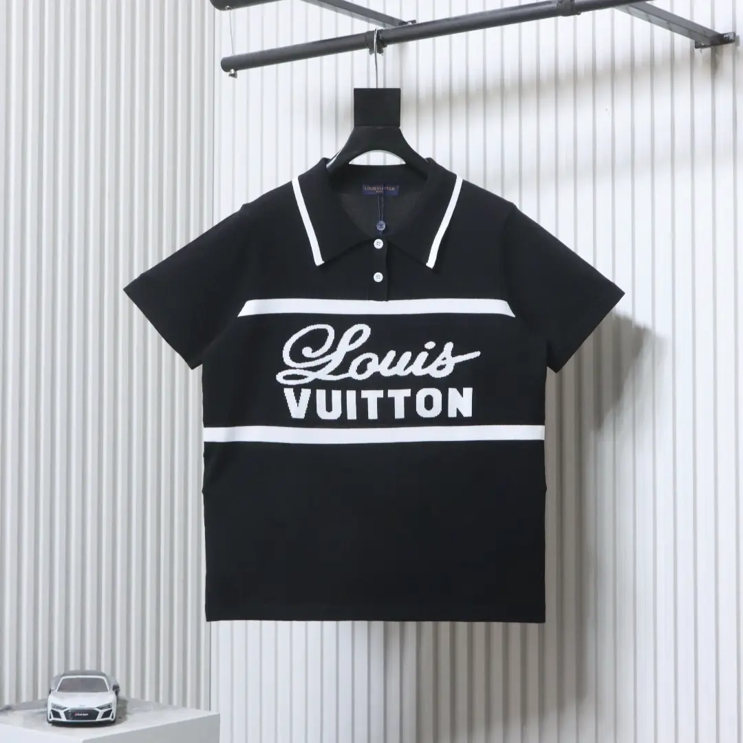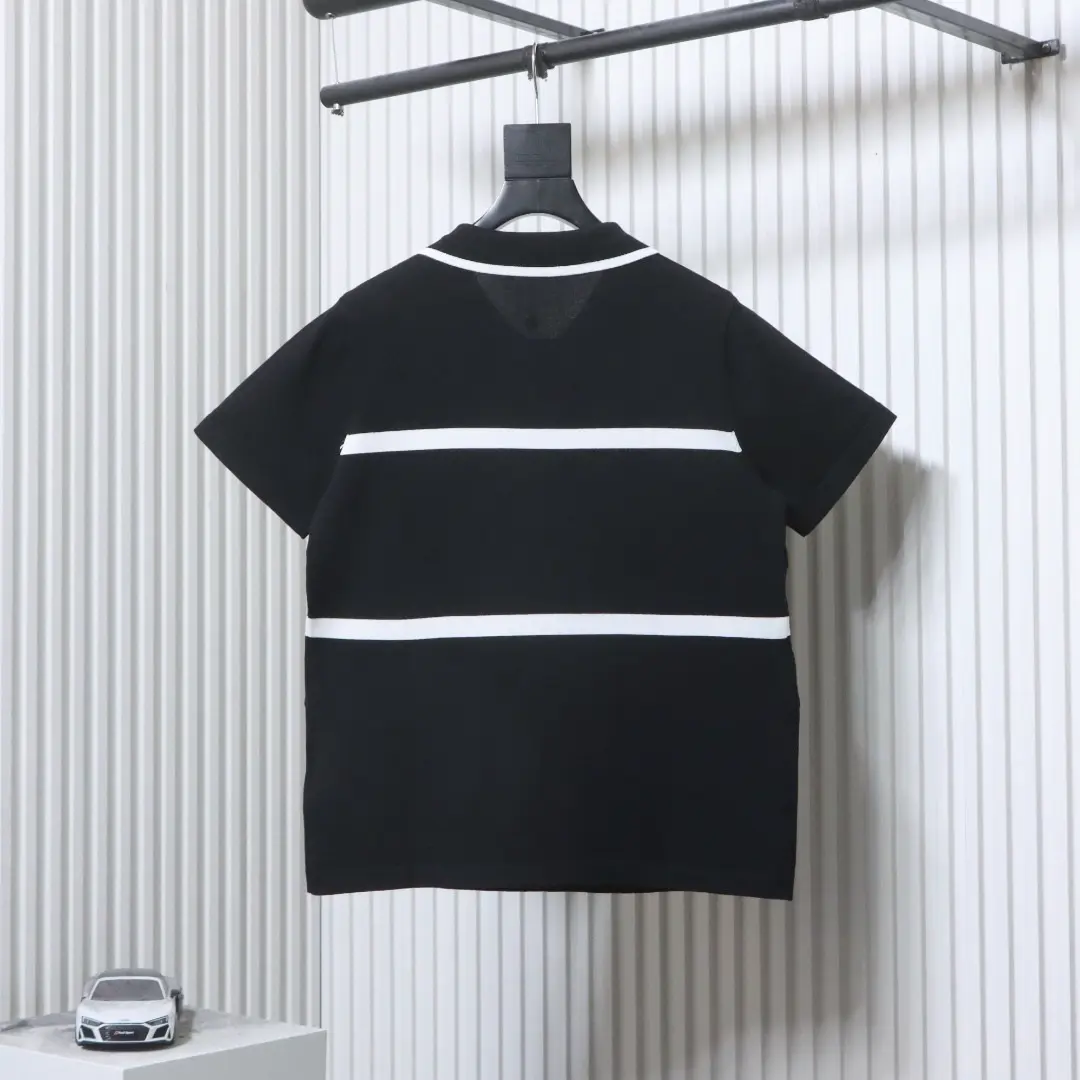 Gestreiftes, kurzärmeliges Strick-Polohemd mit charakteristischem Buchstaben-Jacquard