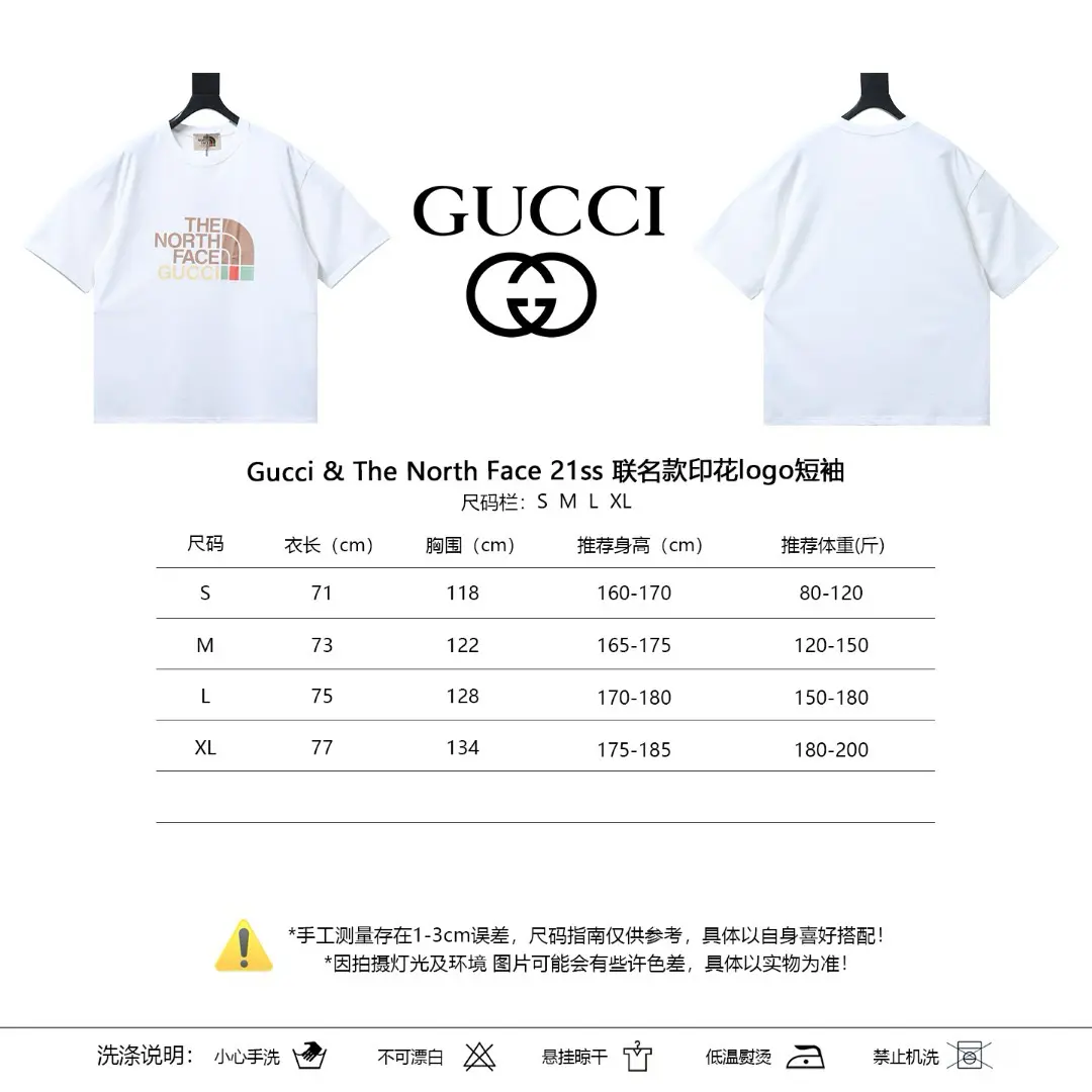 Gu.cc1 & TNF Kollaborations-T-Shirt mit aufgedrucktem Logo und kurzen Ärmeln