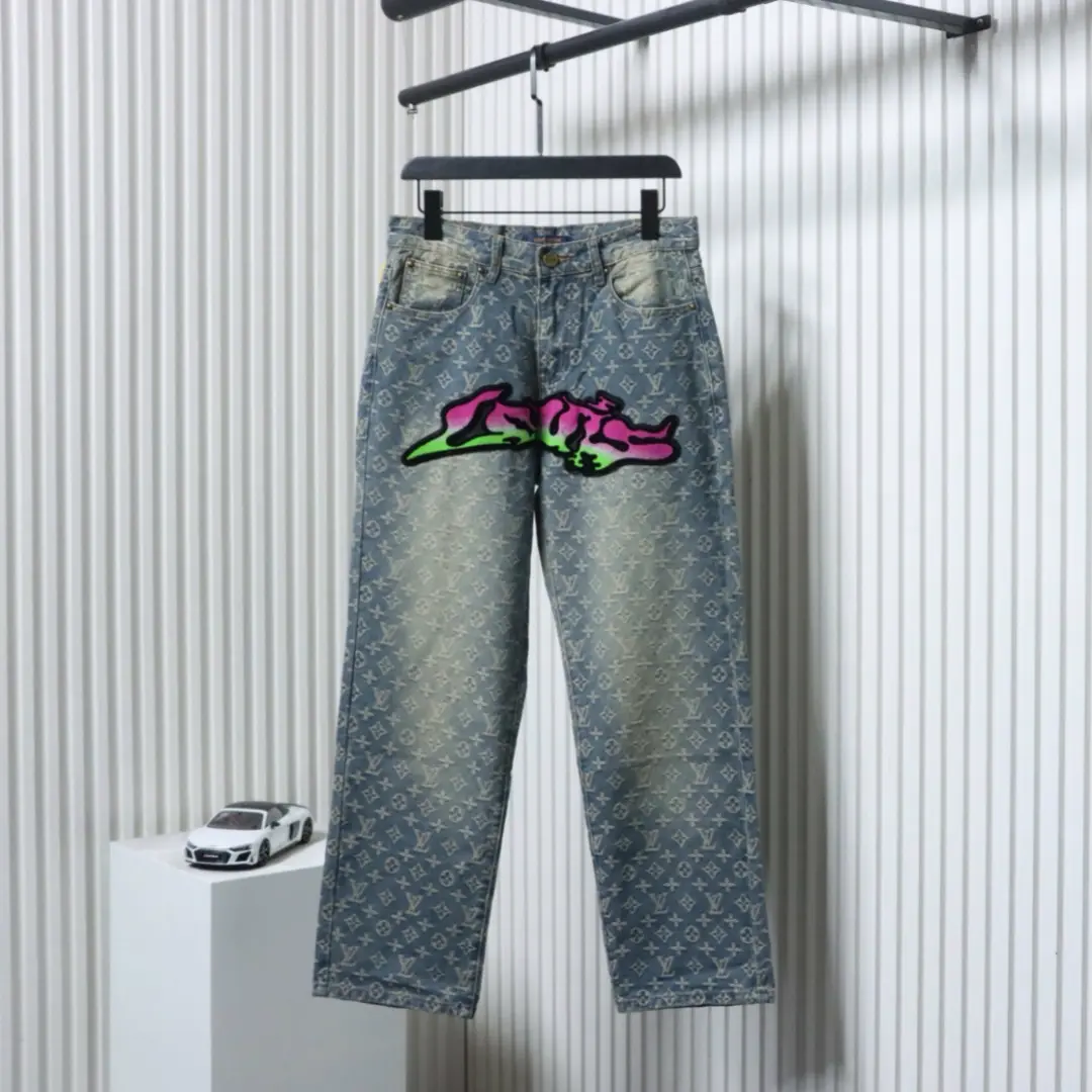 Jeans mit Graffiti-Farbverlaufsstickerei XXL