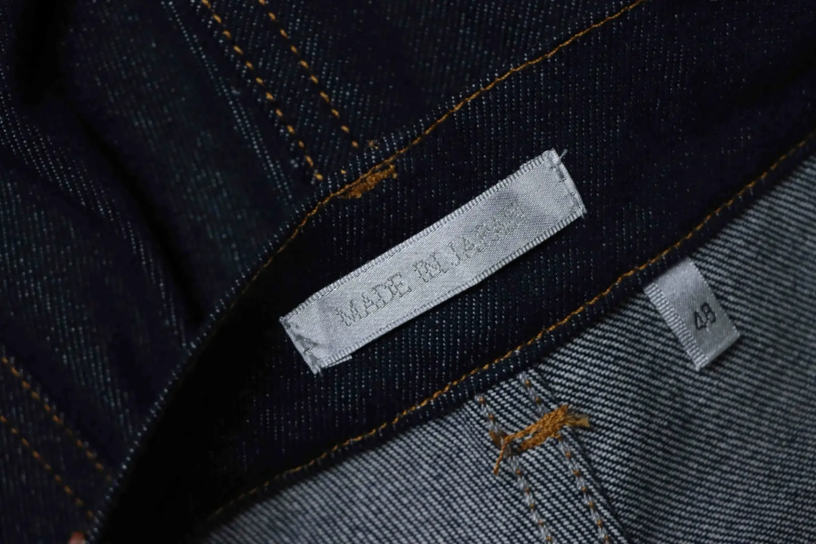 -39%- Dieses leichte und weiche Modell aus neuem marineblauem Baumwoll-Denim ist auf der Rückseite mit einem „Love“-Etikett aus Leder versehen.