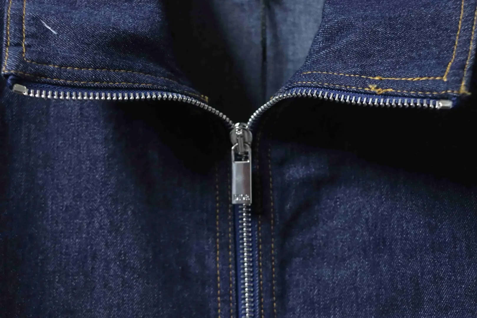 Jeansjacke mit Reißverschluss und gesticktem Logo-Schriftzug