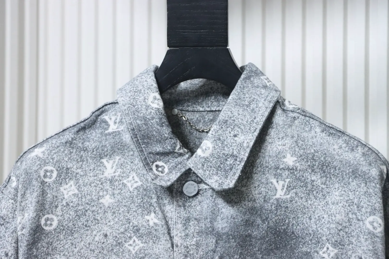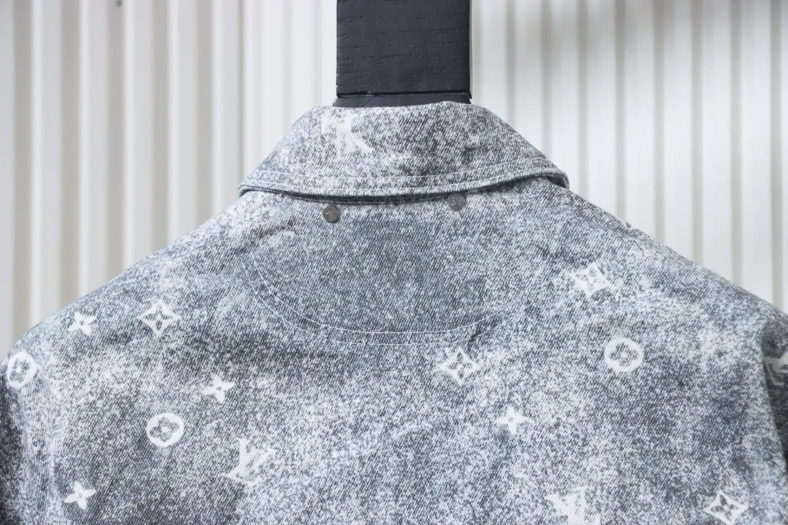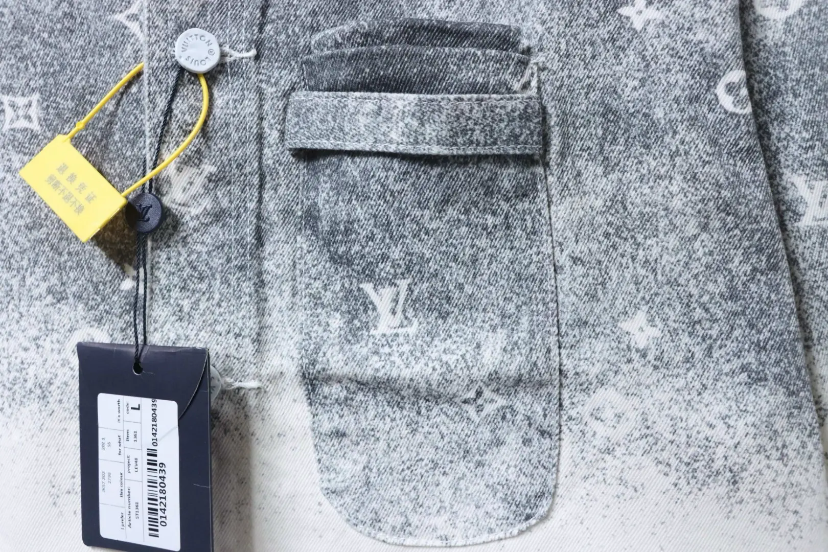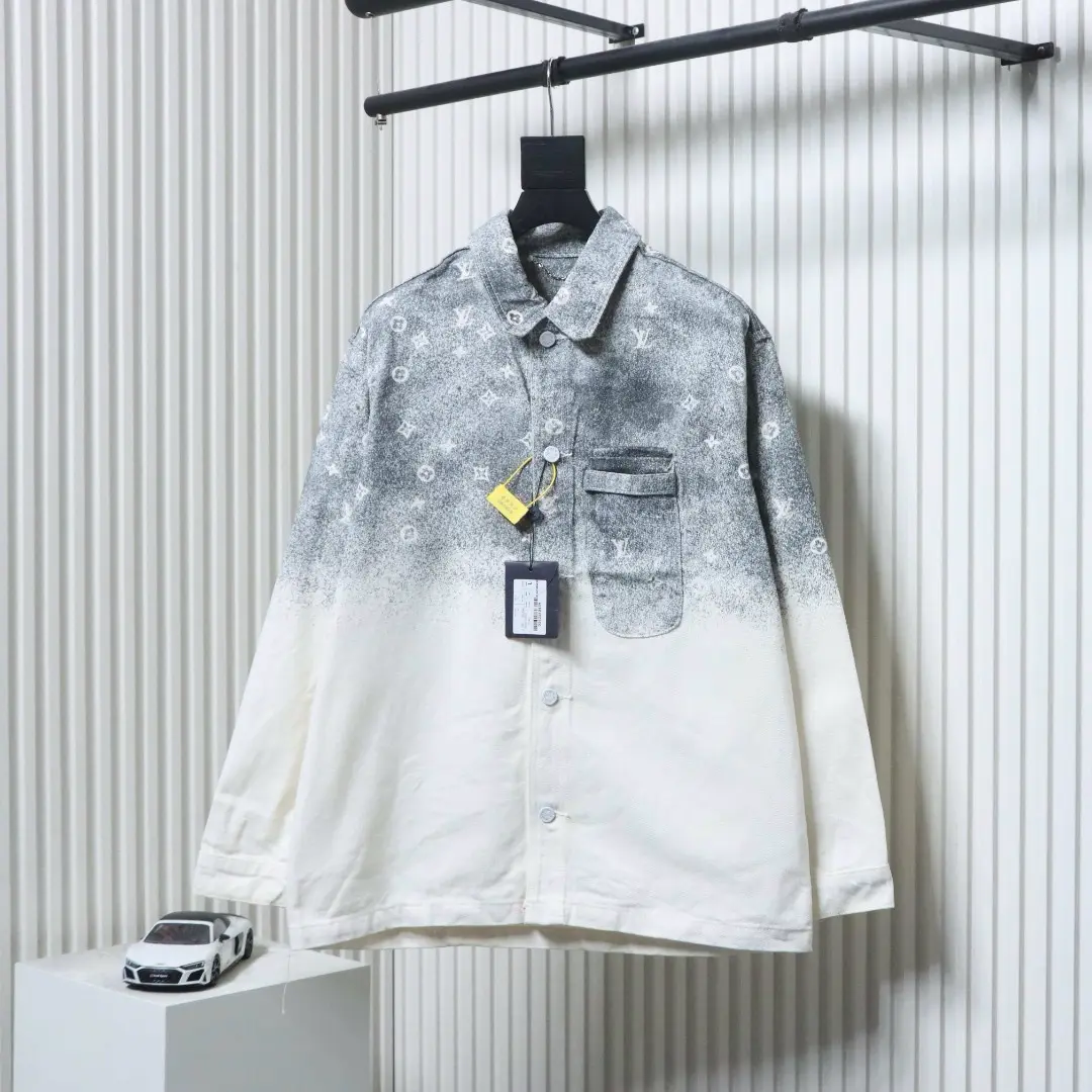 - Lockere Passform. Blau-weiße Jeanshemdjacke mit Farbverlauf und Logo.