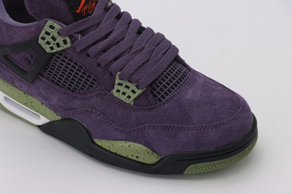 Der Air Jordan 4 Retro „Canyon Purple“ stellt eine moderne Neuinterpretation des klassischen Designs von Tinker Hatfield aus dem Jahr 1989 dar. Im Gegensatz zur Lederkonstruktion des Originals verfügt diese aktualisierte Version über ein luxuriöses Obermaterial aus violettem Wildleder, ergänzt durch auffällige violette Überzüge. Zu den Designdetails gehören auffällige grün gesprenkelte Ösen und eine leuchtend grüne Zwischensohle, die der Ästhetik des Schuhs ein dynamisches Element verleihen. Das ikonische Jumpman-Logo ziert das orangefarbene gewebte Zungenetikett und verleiht dem Sneaker einen einzigartigen Look. Schwarze Akzente auf den geformten Flügeln, die geprägte Jumpman-Fersenlasche und die Traktionsgummiaußensohle mit Fischgrätenmuster sorgen für einen Hauch von Kontrast und sorgen für eine optisch ansprechende Retro-Atmosphäre vor einem violetten Hintergrund. Der Air Jordan 4 Retro „Canyon Purple“ verbindet moderne Designelemente mit der zeitlosen Ausstrahlung der Originalsilhouette und verleiht einem beliebten Klassiker eine frische und fesselnde Note.