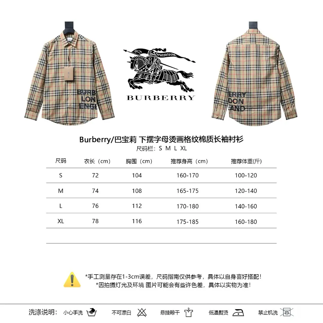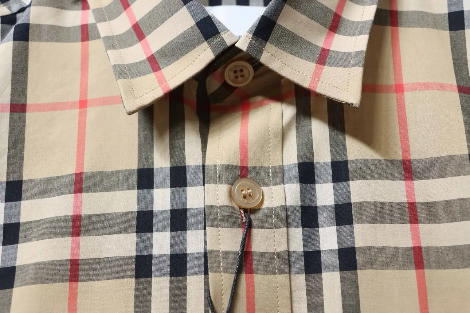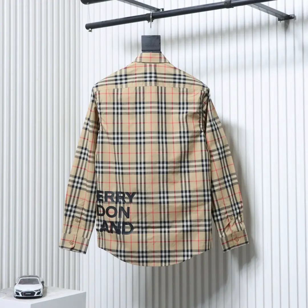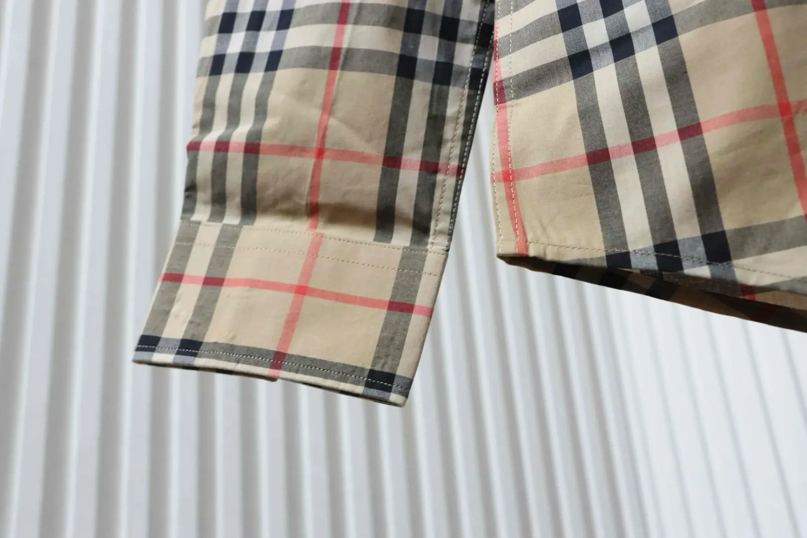 Kariertes Baumwoll-Langarmhemd mit aufgedrucktem Buchstaben am Saum