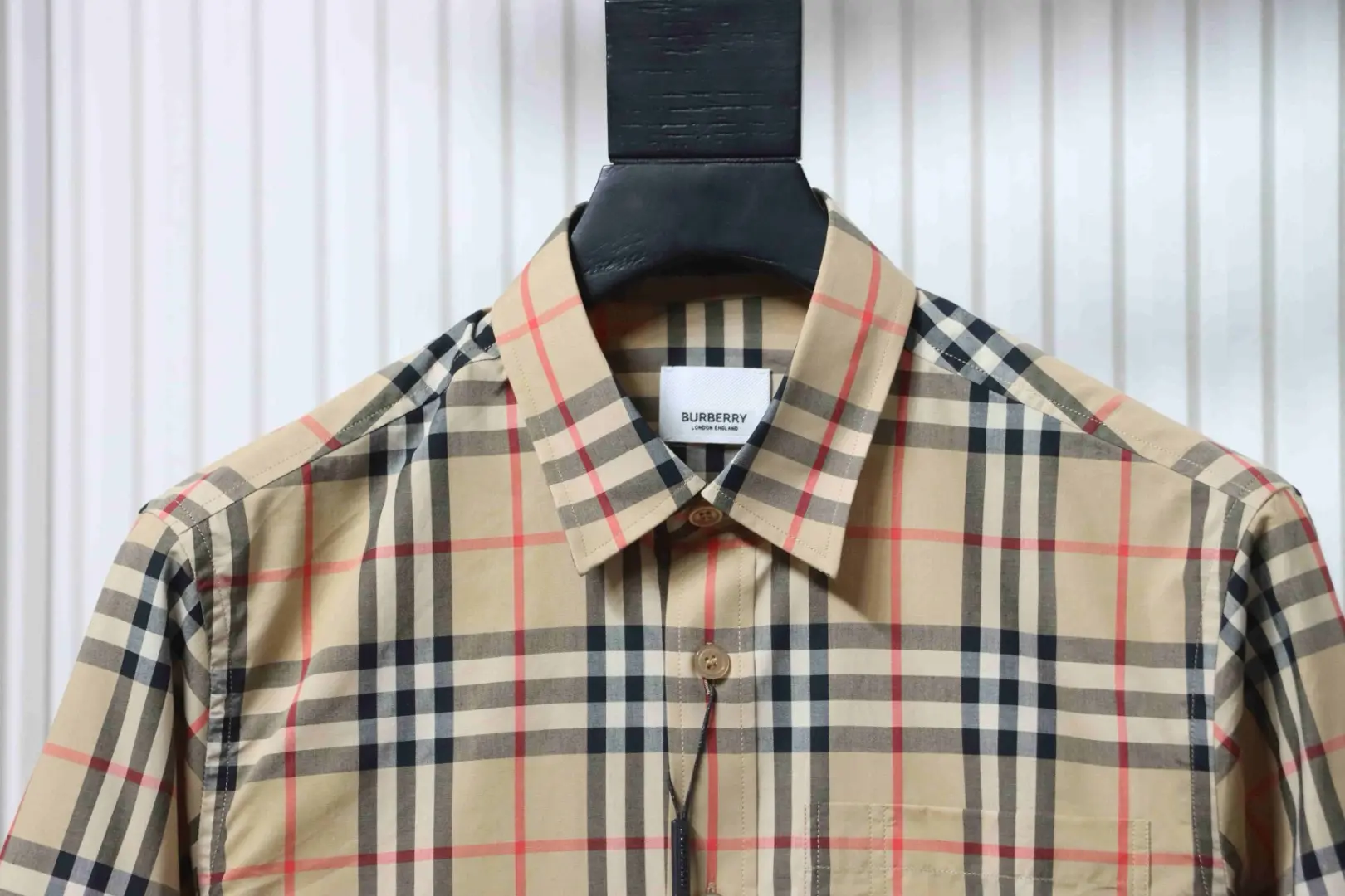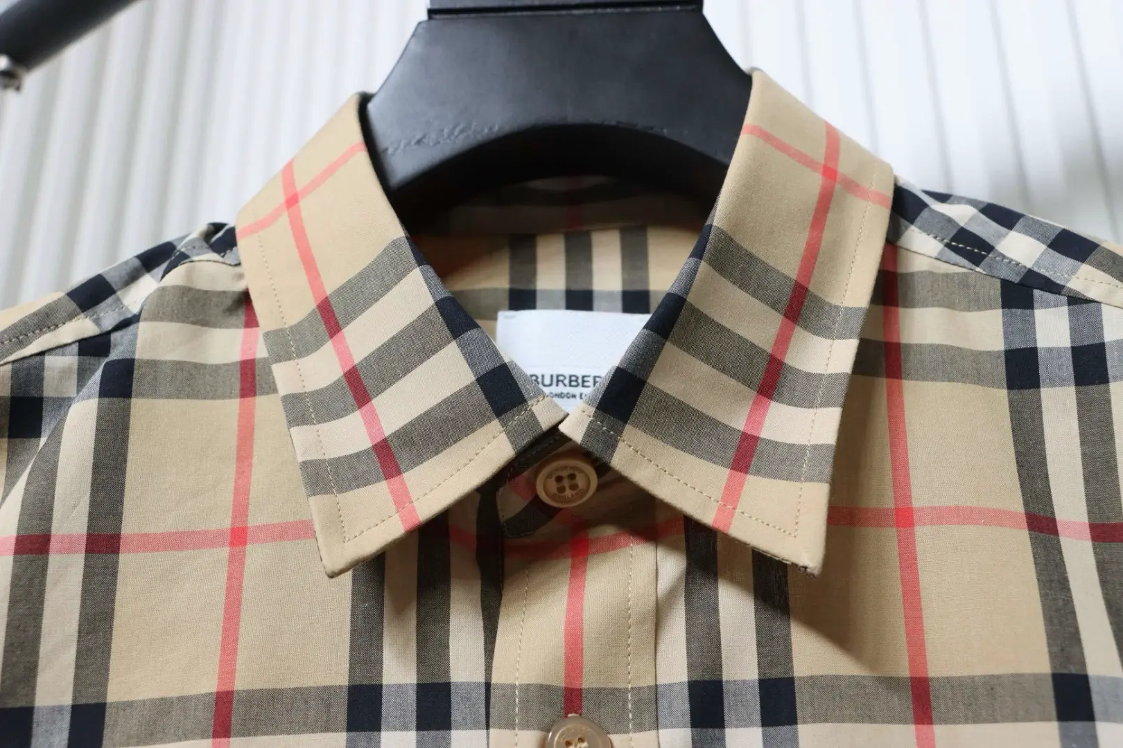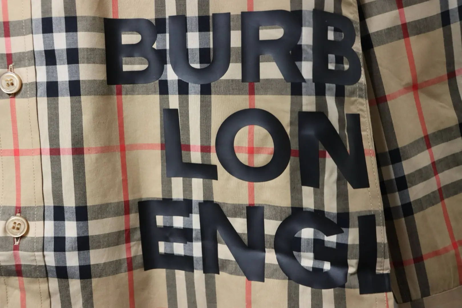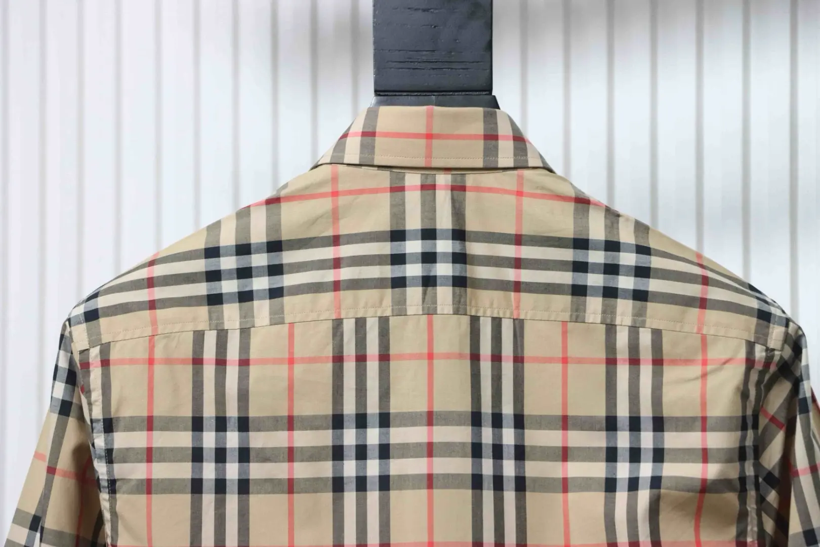 Kariertes Baumwoll-Langarmhemd mit aufgedrucktem Buchstaben am Saum