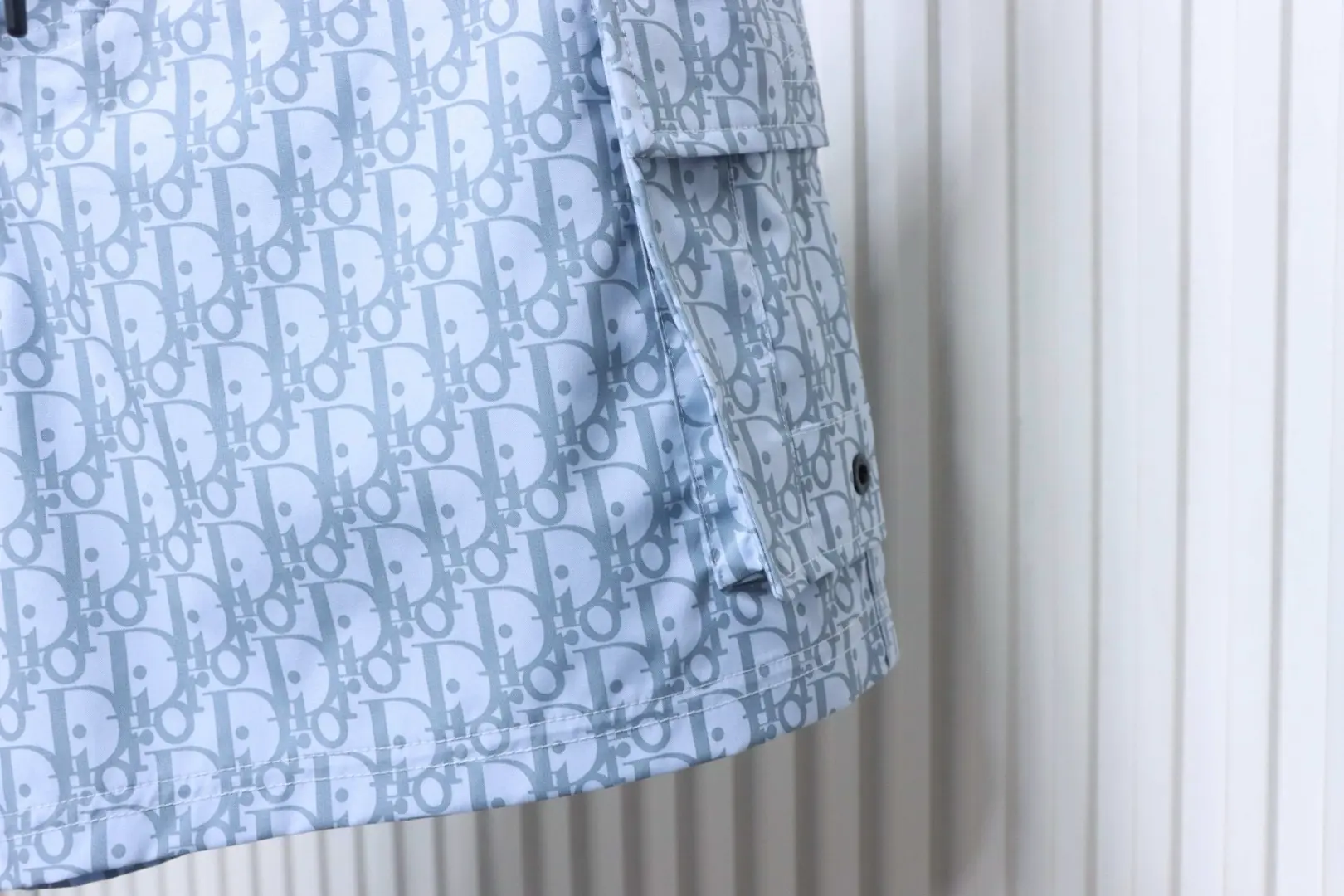- Die Shorts sind mit dem klassischen „Oblique“-Print versehen und verfügen über einen Taillenzug sowie seitliche Pattentaschen. Das Gewebe ist weich und angenehm zu tragen; es zeichnet sich durch eine vollkommene Farbgleichmäßigkeit ohne jegliche Farbabweichungen aus und lässt sich ideal mit passenden Kleidungsstücken kombinieren, um einen stilvollen, aufeinander abgestimmten Look zu kreieren.