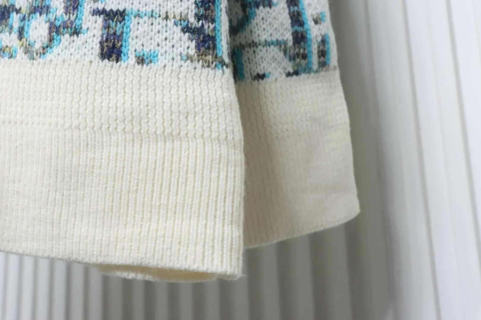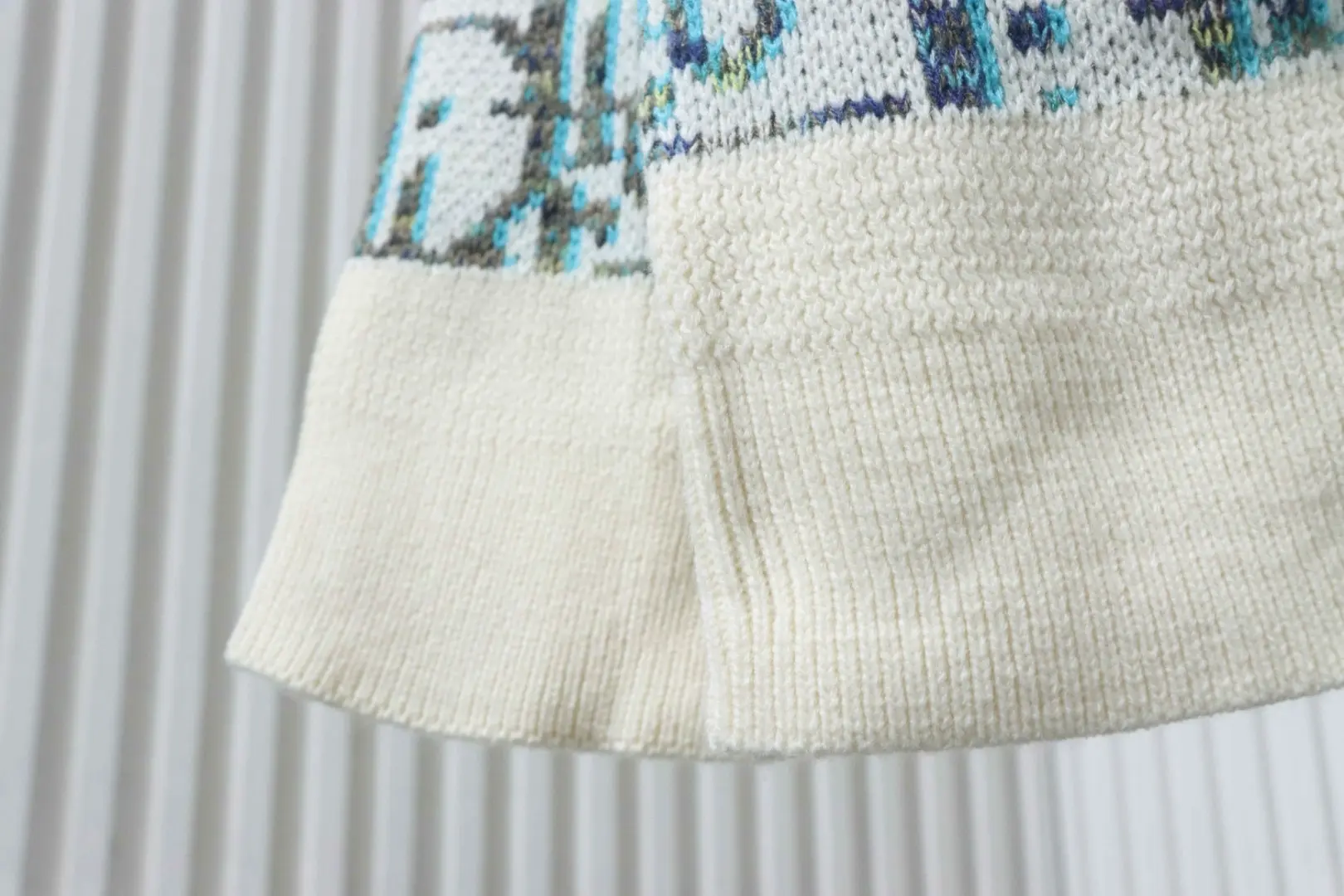 • Das Garn ist in Beige, Blau, Braun und Gelb individuell gefärbt.