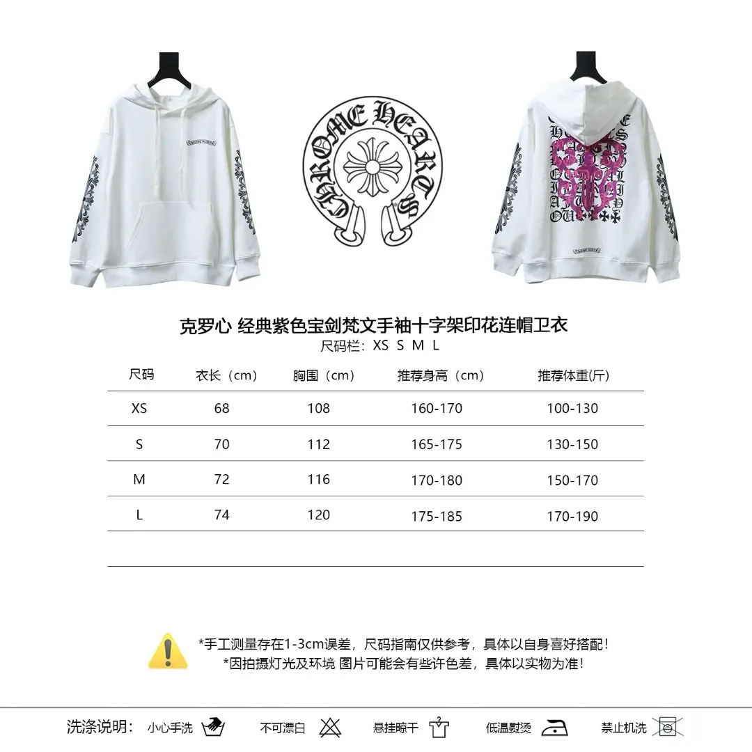 Klassischer lila Kapuzenpullover mit Schwert-, Sanskrit-Hand- und Kreuzaufdruck