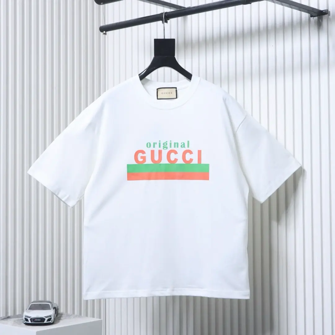 Klassisches, rot-grün gestreiftes Kurzarm-Top mit Buchstaben-Print