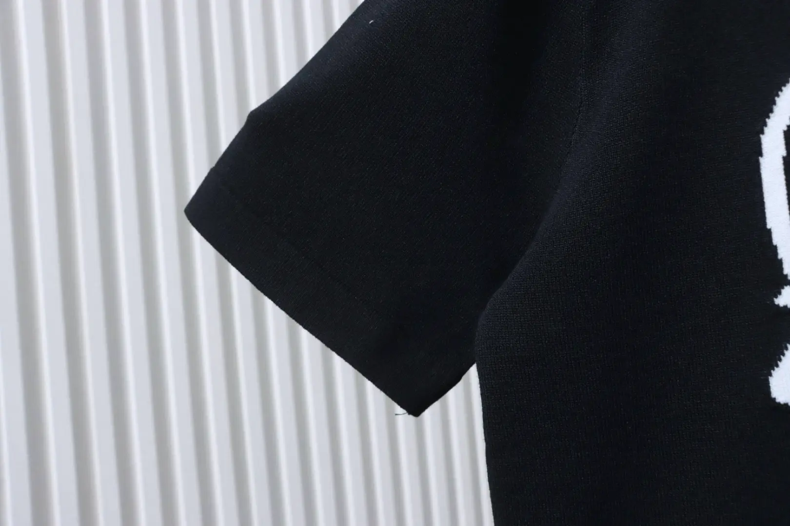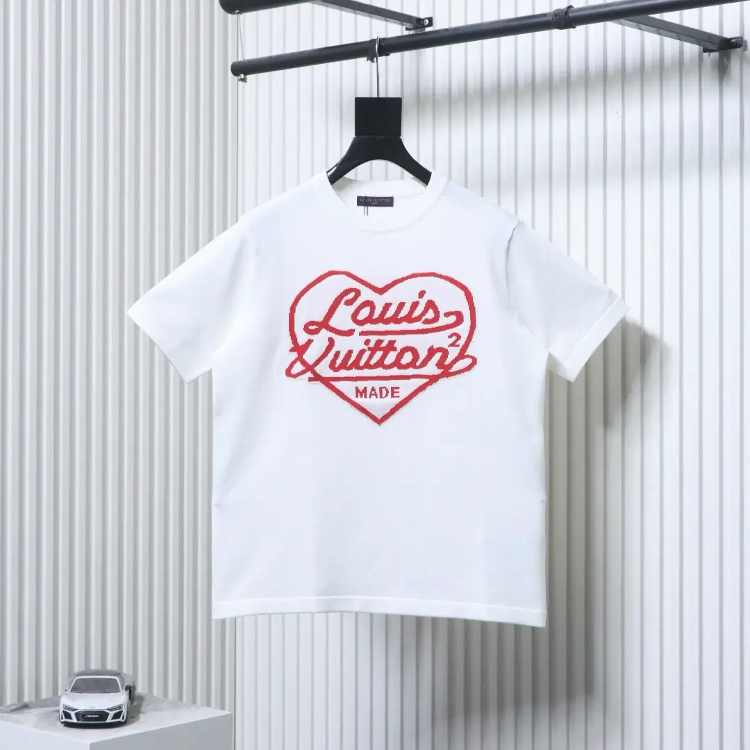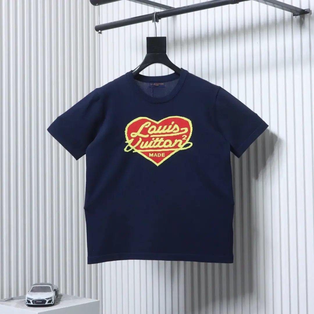 Kurzärmeliges Jacquard-Strick-T-Shirt mit Herzmuster