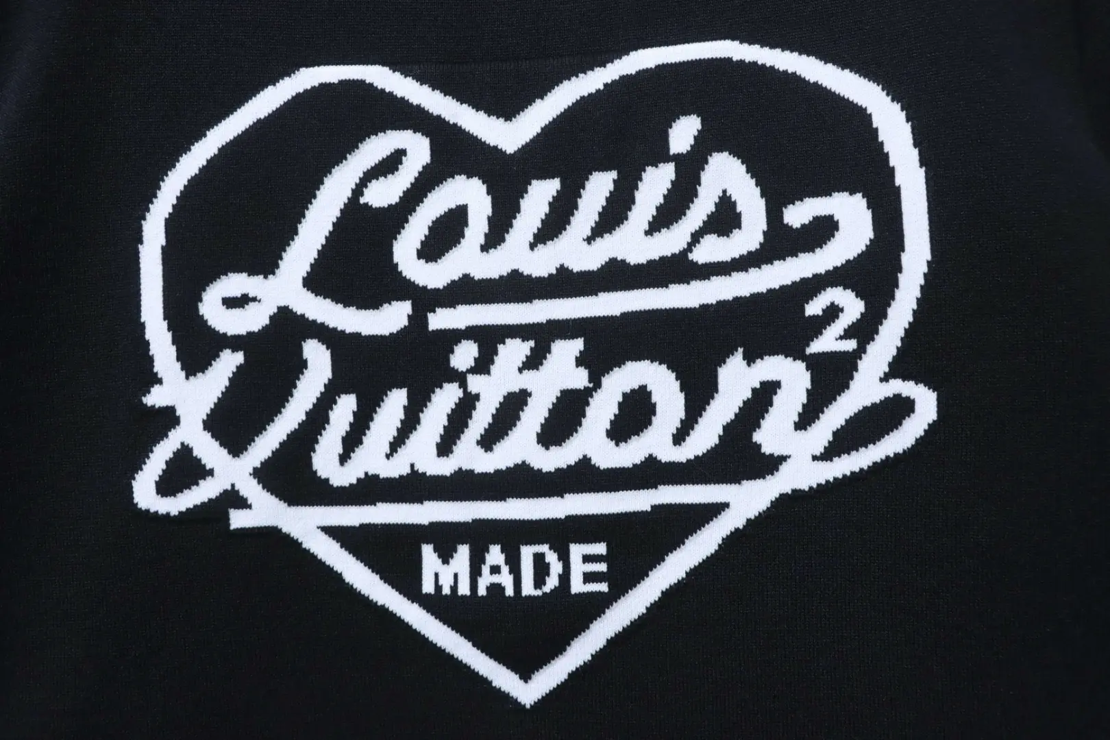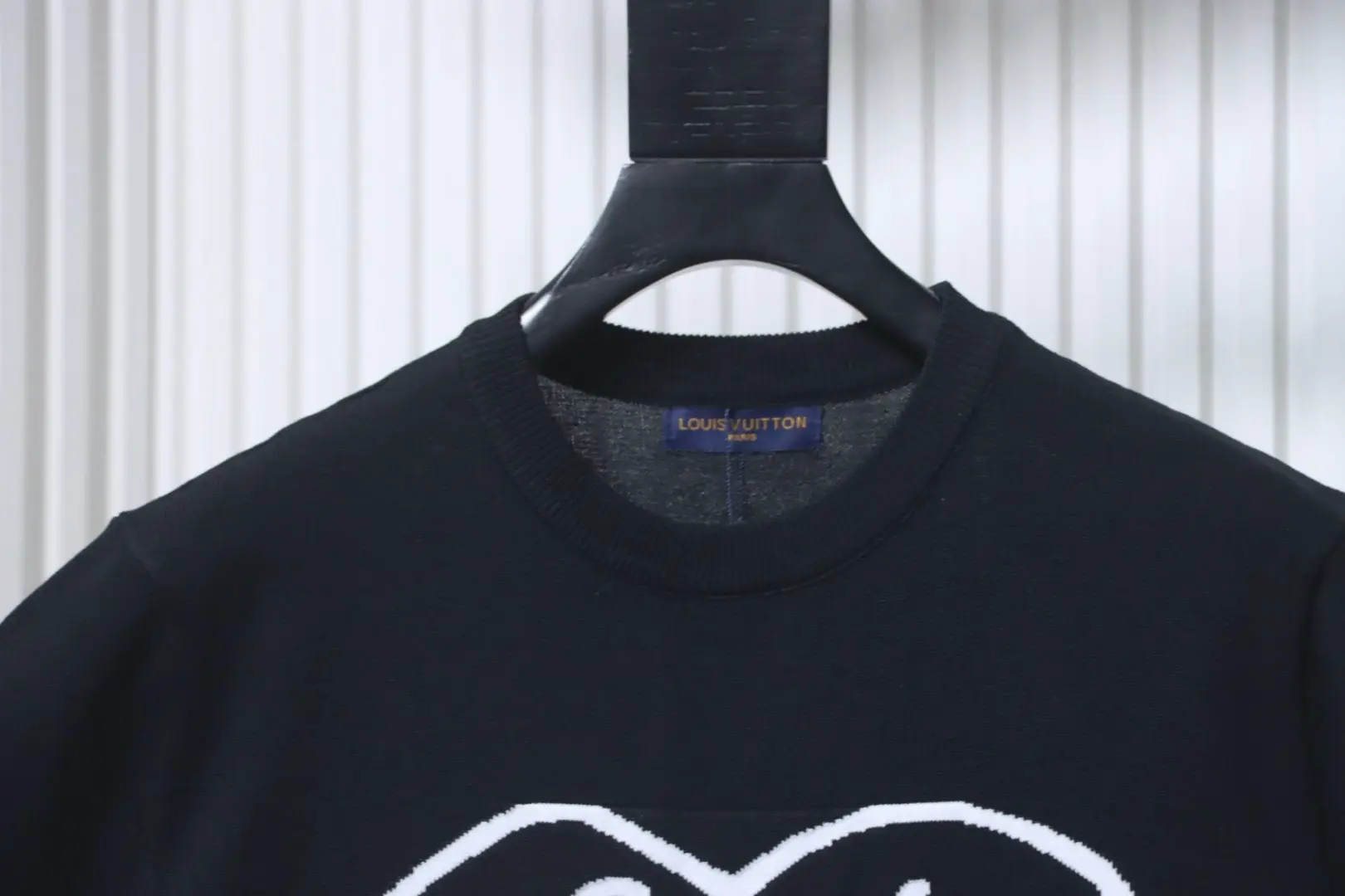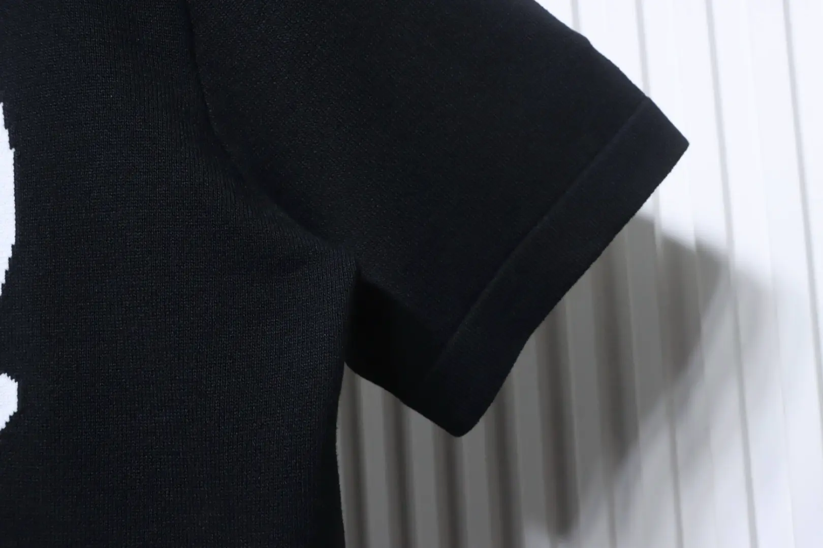 Kurzärmeliges Jacquard-Strick-T-Shirt mit Herzmuster