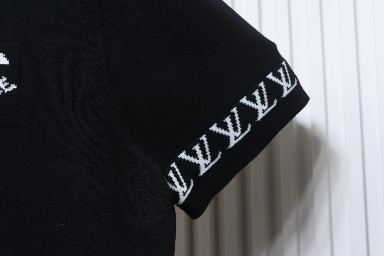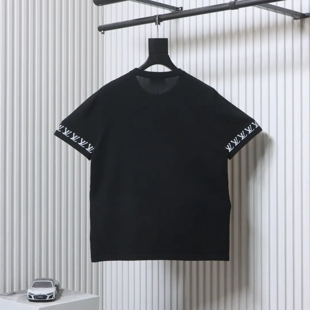 Kurzärmeliges Jacquard-Strick-T-Shirt mit Logo und kleinem Schriftzug an den Bündchen
