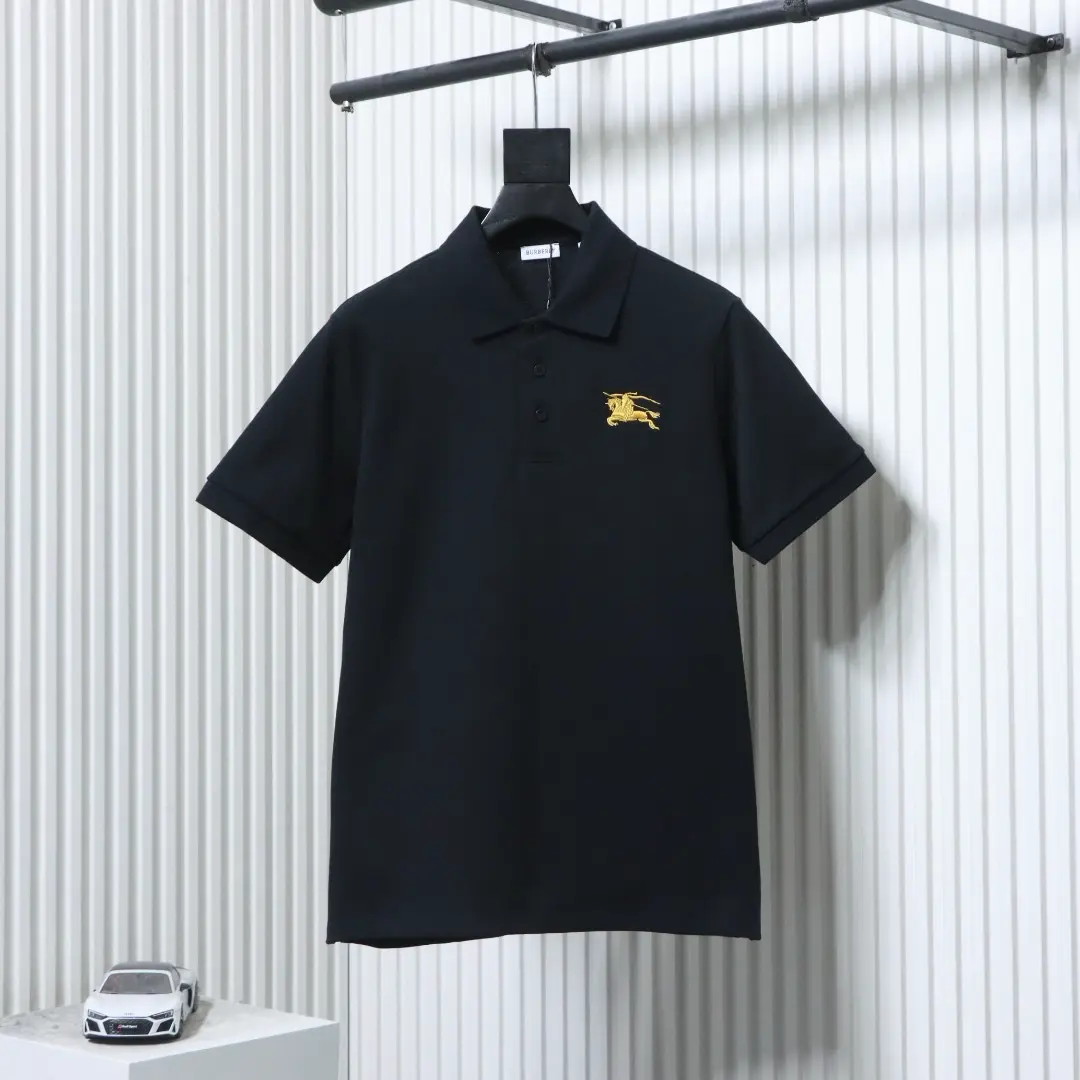 Kurzärmeliges Poloshirt mit gesticktem Kriegspferd auf der Brust XXL