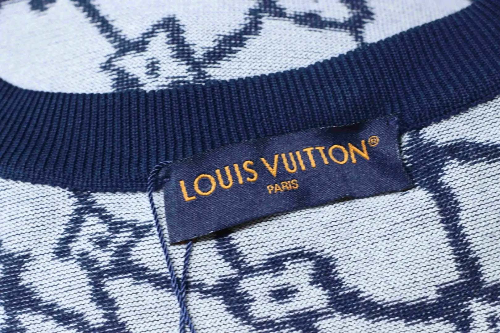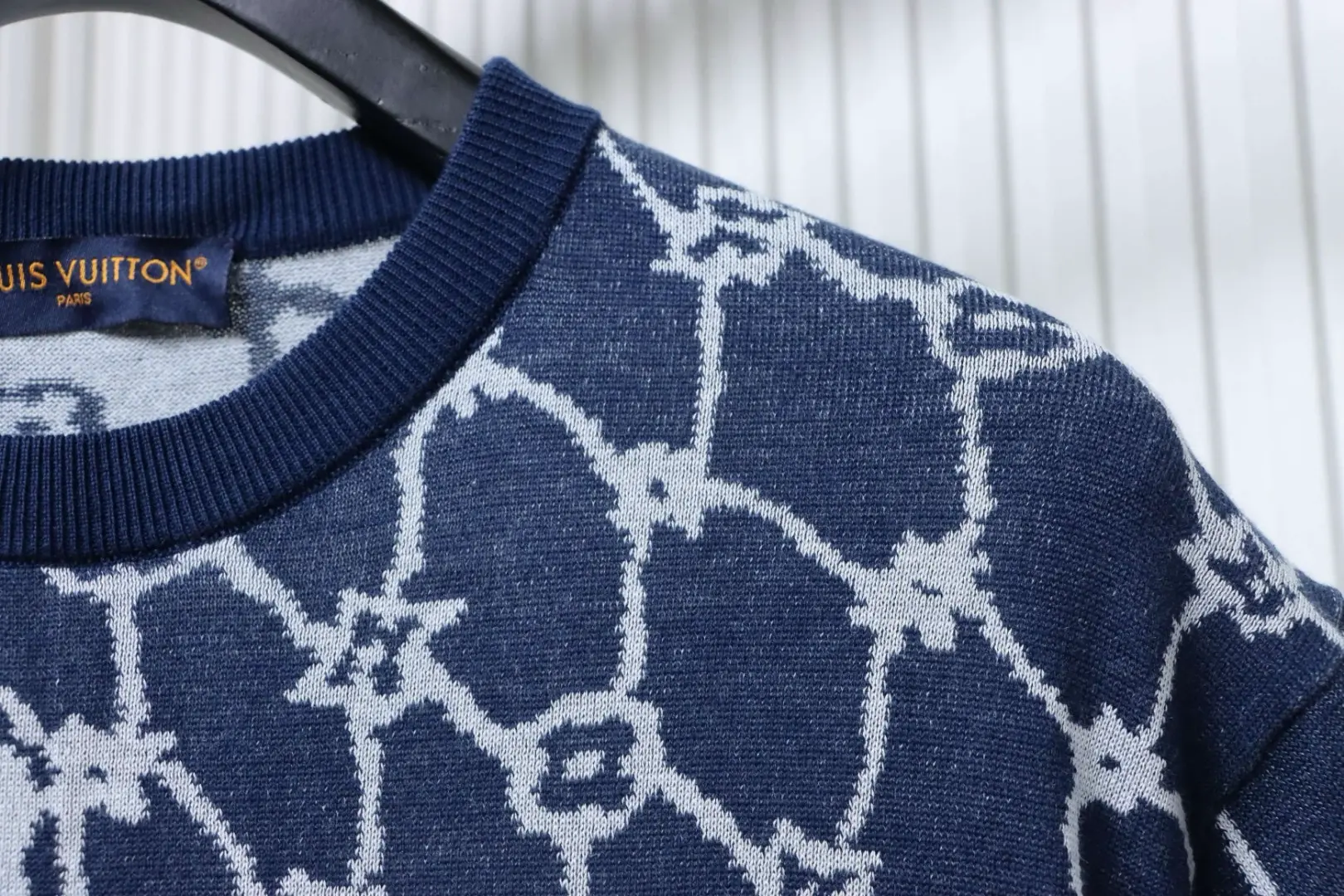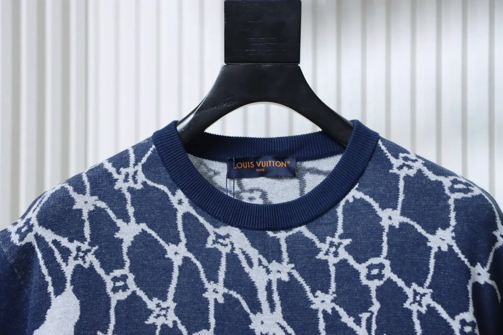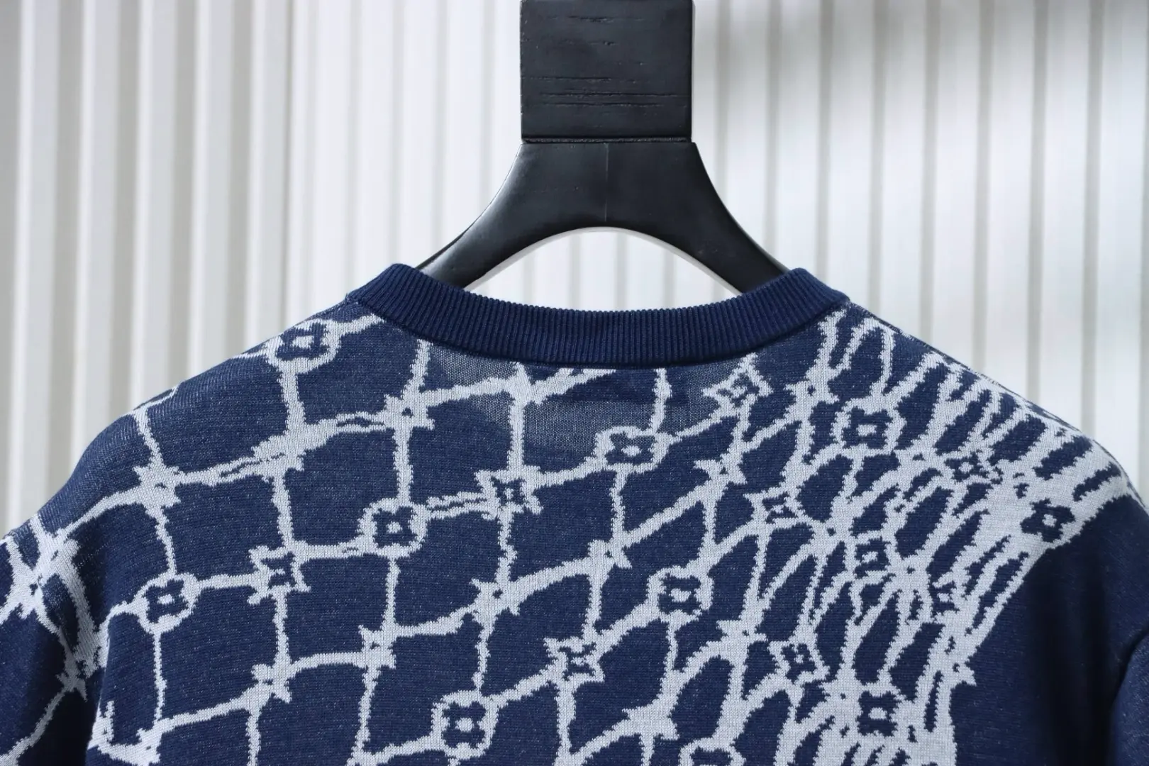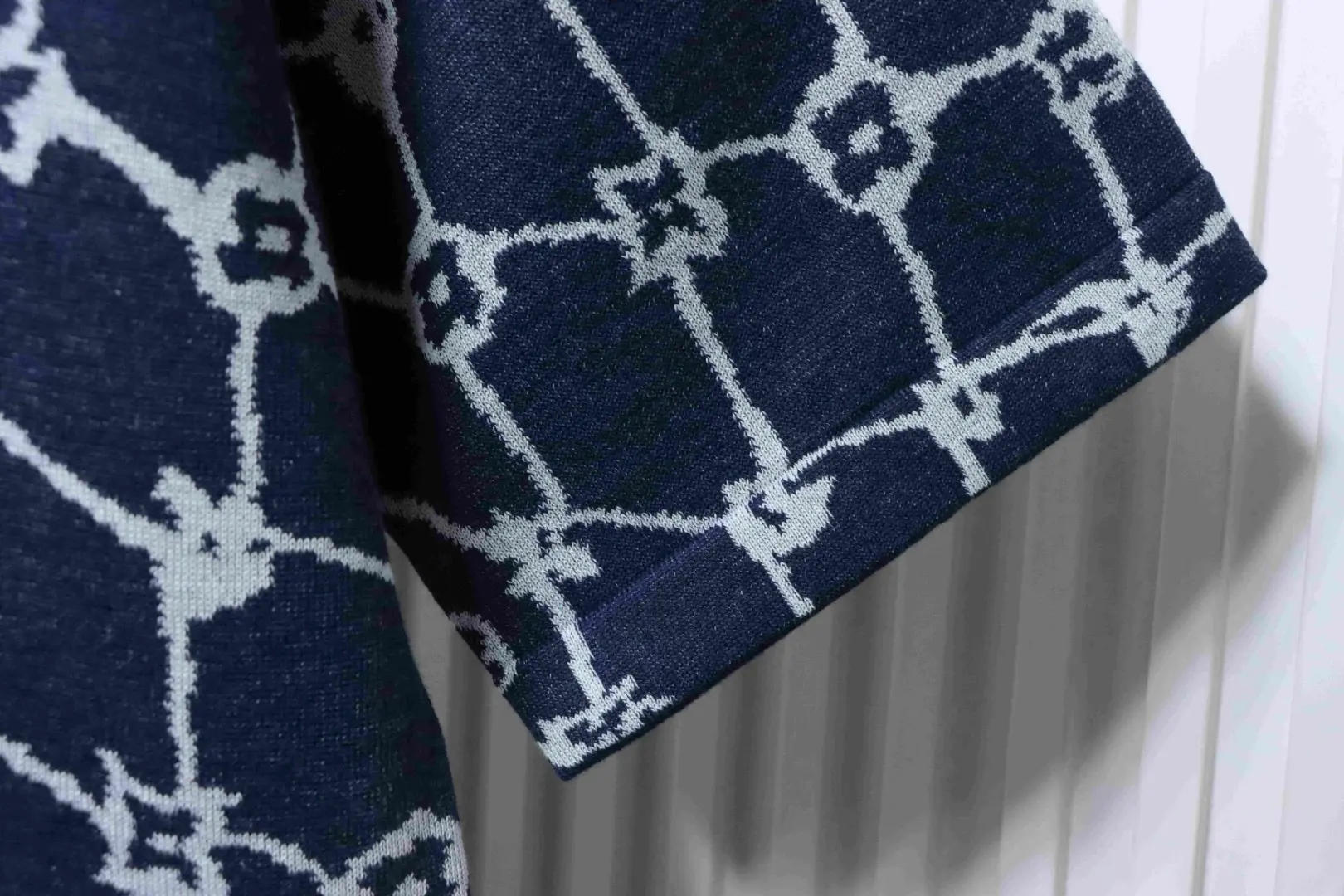 - Passt perfekt zu Sneakers Reps . Normale Passform, durchgehendes Monogram Fishnet Jacquard-Gewebe, gerippter Kragen, 100 % Baumwolle.